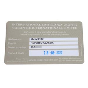 Jaeger LeCoultre card, presentation non-Jaeger LeCoultre box. Exclusive SwissWatchExpo Certificate of Authenticity. |