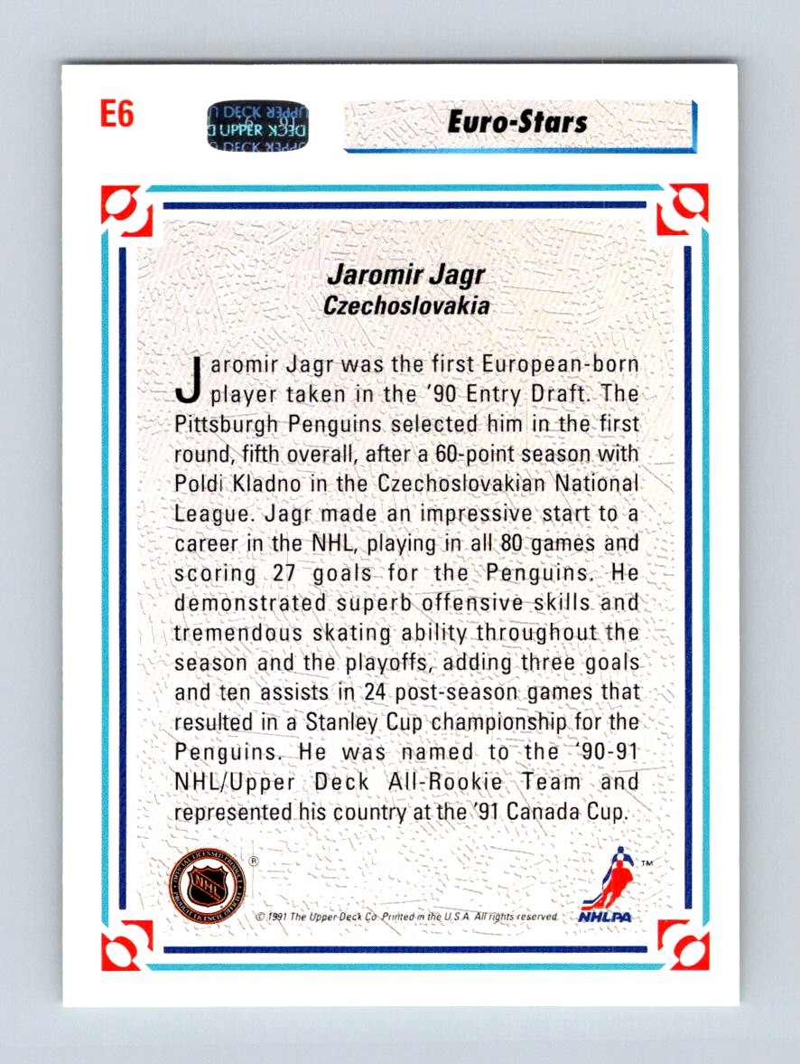 | 1991-92 Upper Deck Euro Stars Jaromir Jagr Pittsburgh Penguins #E6 |