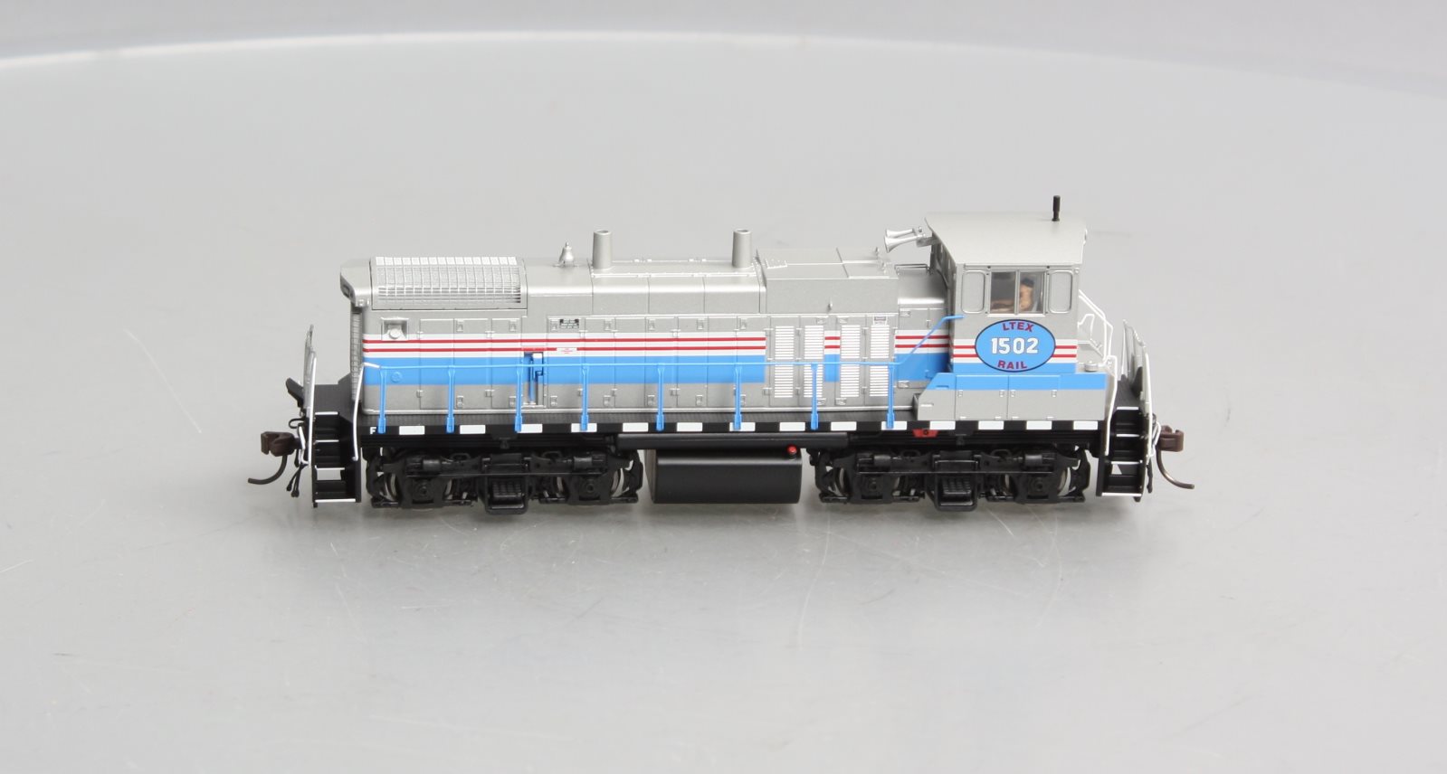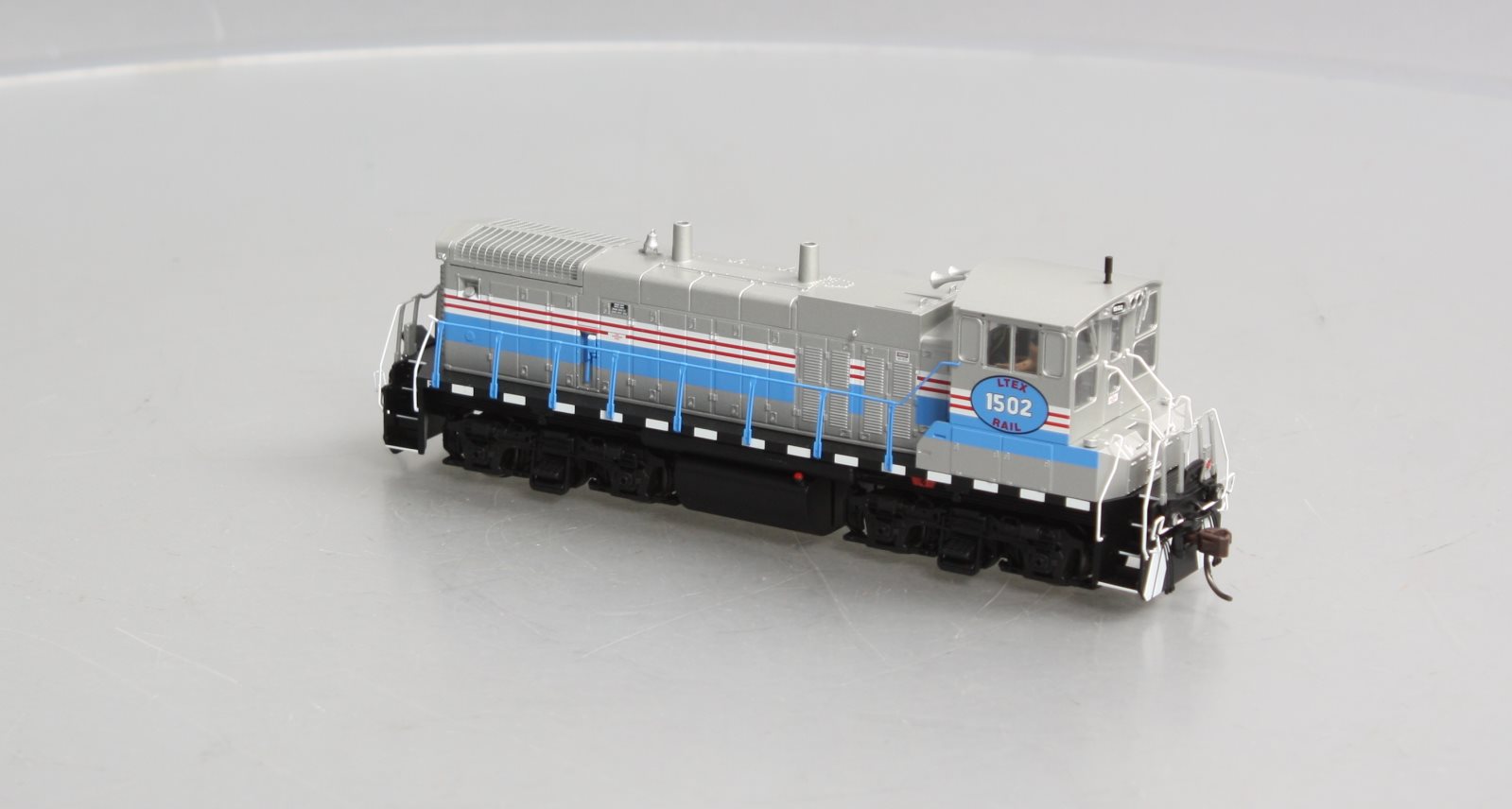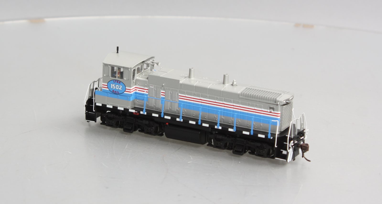 This is a Atlas 10003845 HO Scale LTEX MP150DC Diesel Locomotive Standard DC #1502. Features: Separately-applied scale detail parts include: windshield wipers, metal grab irons, coupler cut levers, multiple-unit hoses, snow plow, train line hoses, fine scale handrails, and more! See through step detail on sill, Etched metal radiator grilles, Painted crew members, Factory-equipped with AccuMate knuckle couplers, Coupler pocket designed to accept AccuMate Proto-couplers, Five-pole skewed armature motor w/ dual flywheels for optimum performance at all speeds, Directional lighting with golden-white LEDs.