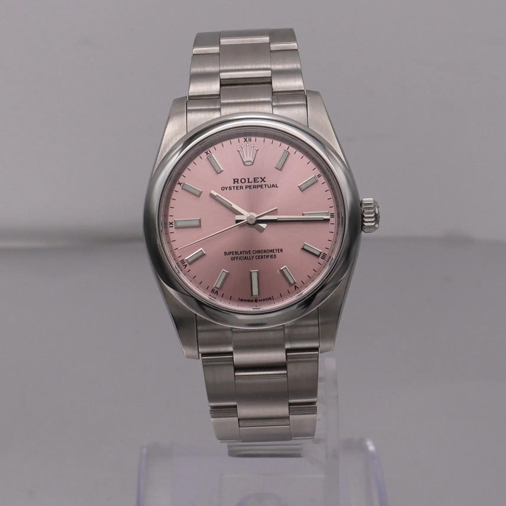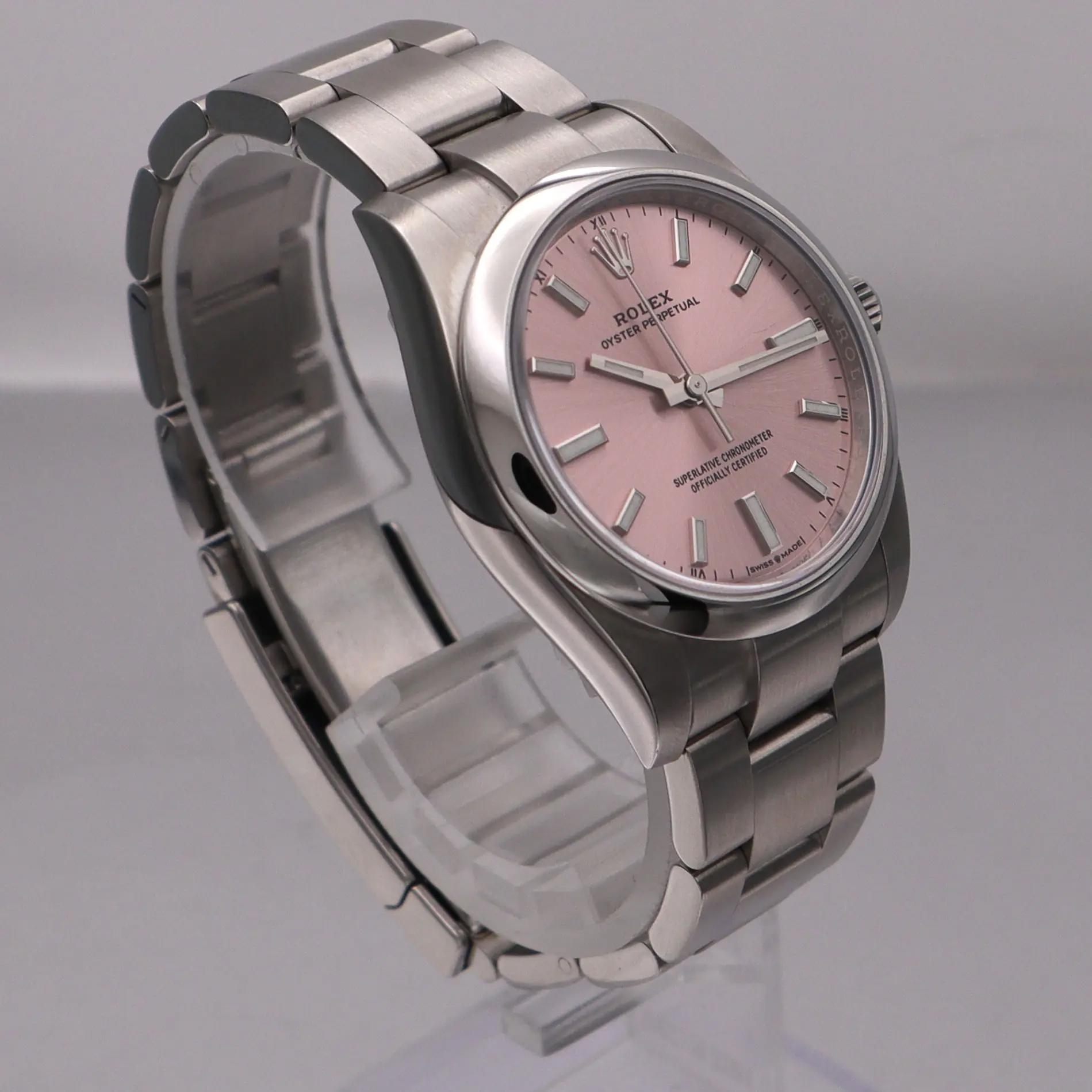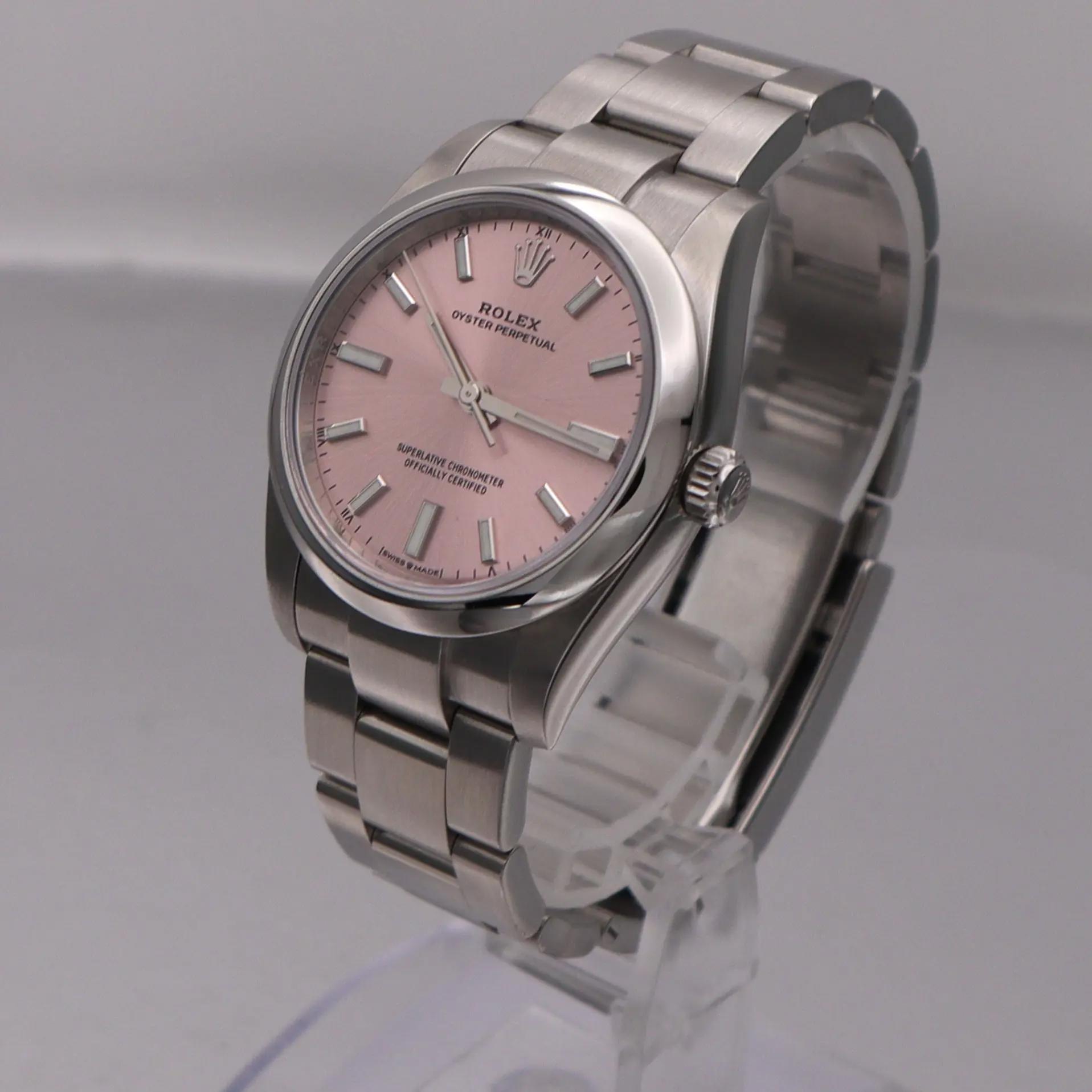 Rolex Oyster Perpetual 34mm Steel Pink Dial Midsize Watch 124200