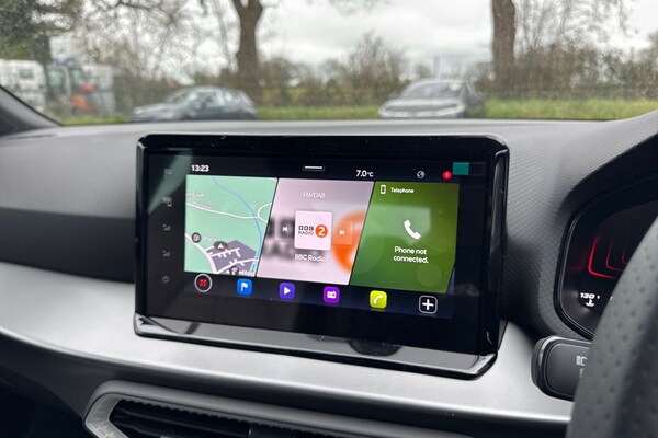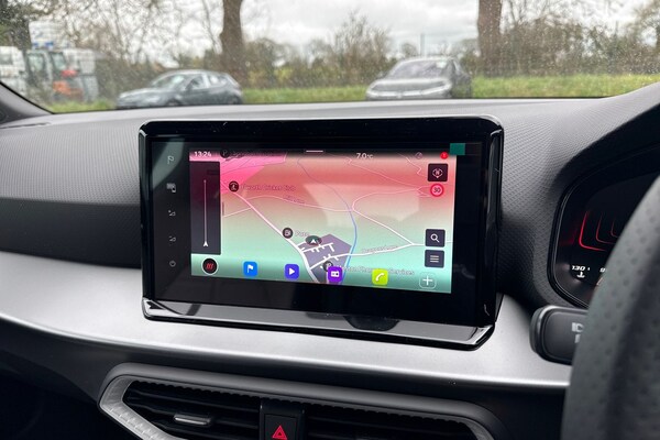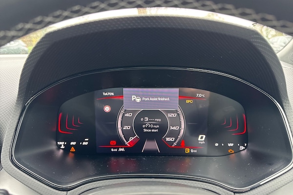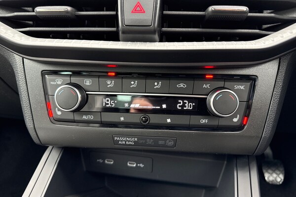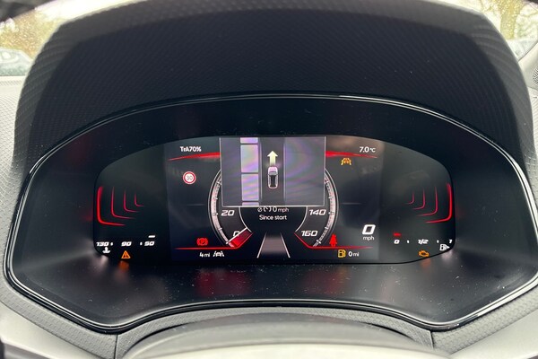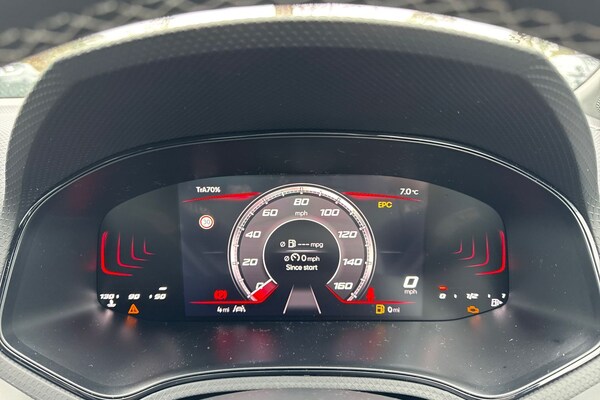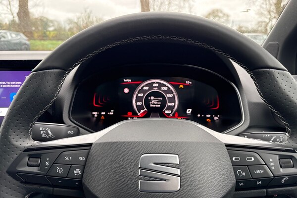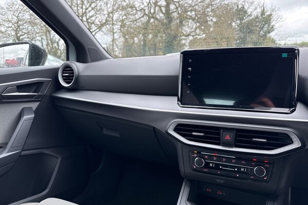 The ALL NEW SEAT Arona 1.0 TSI FR First Edition Euro 6 (s/s) 5dr in Oniric Grey is a striking compact SUV that combines sporty design with premium features. It stands out with its 18 inch black alloy wheels, black roof rails, side skirts, window surrounds, and a contrasting black roof. The exterior is further enhanced by full LED automatic headlights, LED rear taillights, dark tinted rear windows, and a rear spoiler, creating a bold and dynamic presence on the road. Inside, the cabin is both high tech and comfortable, featuring a 10 inch digital cockpit, a 9.2 inch touchscreen display, and SEATs Full Link smartphone integration. Connectivity and convenience are boosted by Bluetooth audio streaming, SEAT Connect services, and a wireless phone charger. The interior also boasts ambient lighting, chrome detailing, and grey air vent accents, with added practicality from front seat back storage pockets and footwell lighting. The FR Black Edition includes a range of driving and comfort enhancements such as dual zone climate control, heated front seats, and a leather trimmed flat bottomed steering wheel with red stitching, paired with a leather gear knob and handbrake. Safety and driver assistance features include a rear view camera, Park Assist, lane keeping system, hill hold control, and KESSY keyless entry and go. This vehicle is compliant with the Ultra Low Emission Zone (ULEZ) standards! This is the Cash Price for the vehicle, Price shown is the Cash Price, no hidden T&...