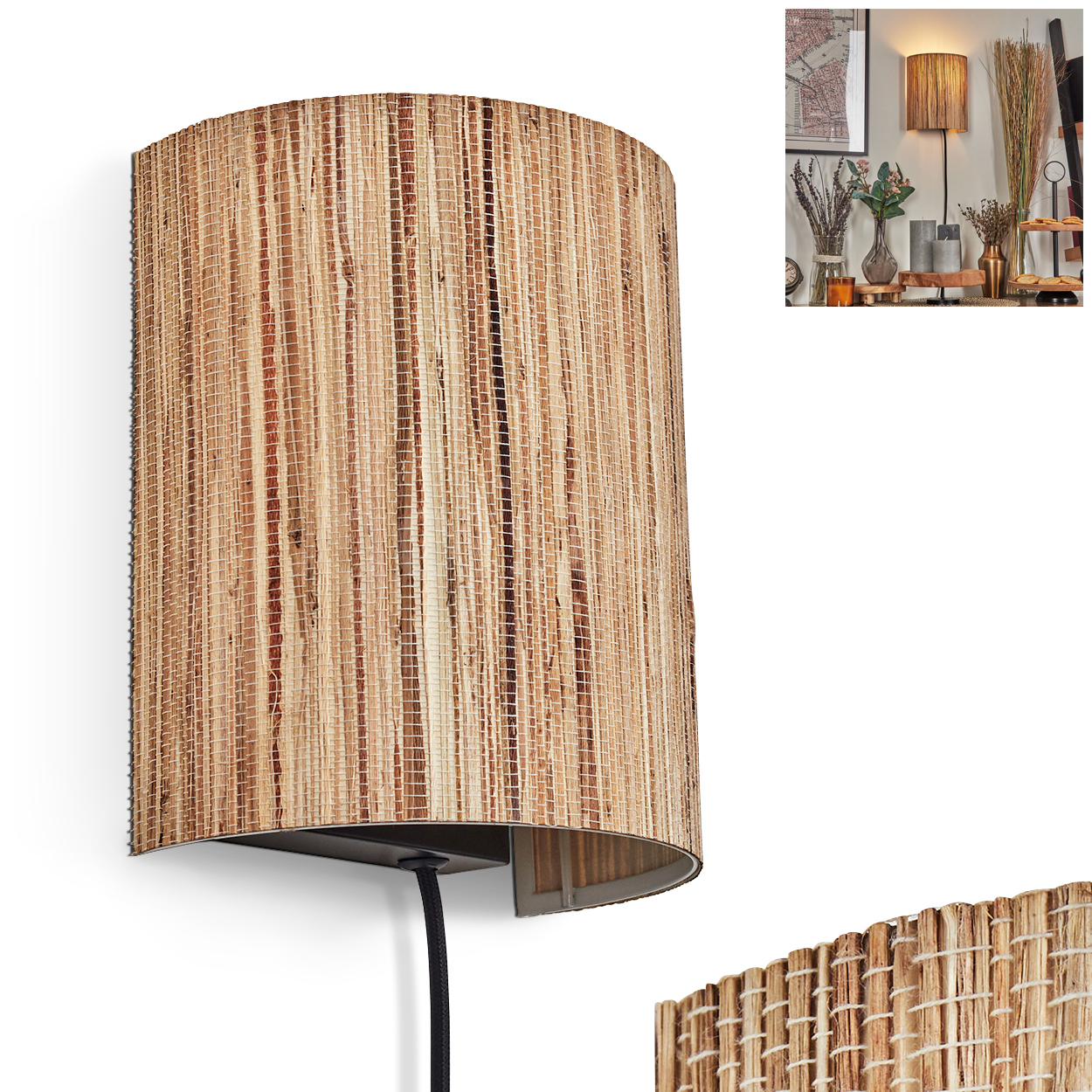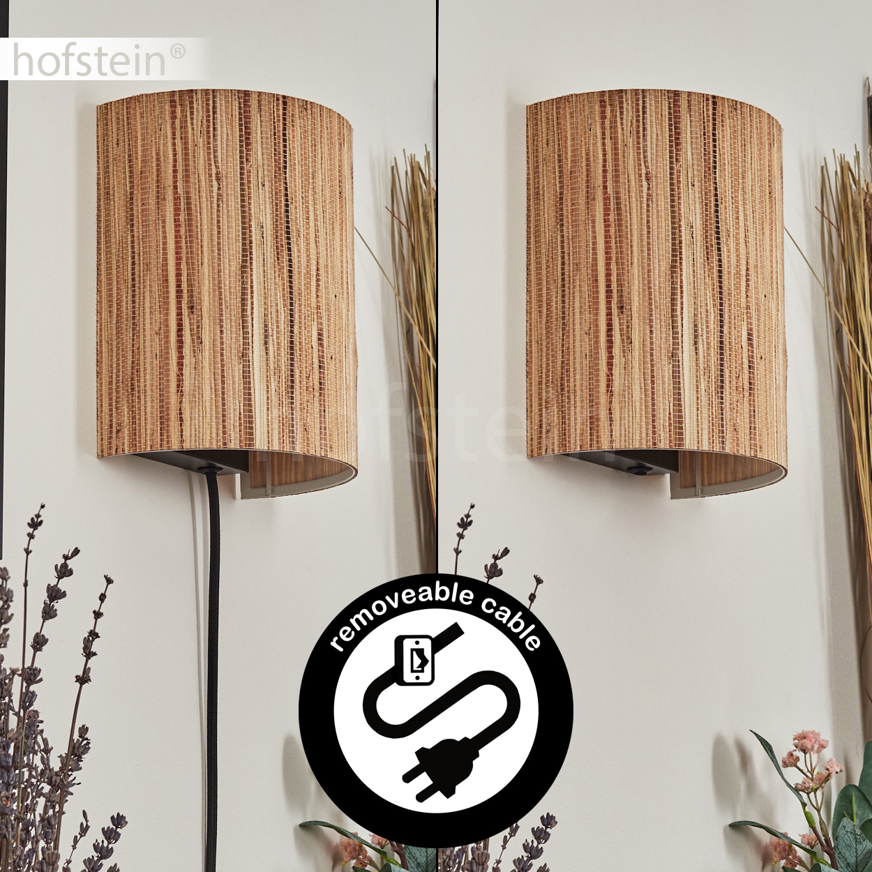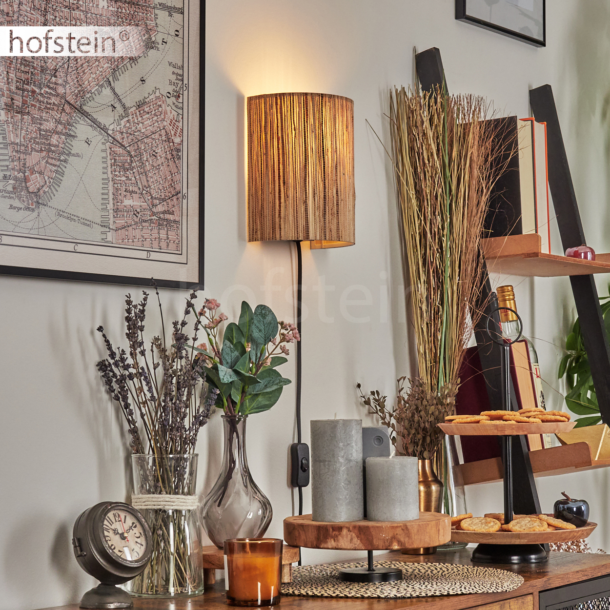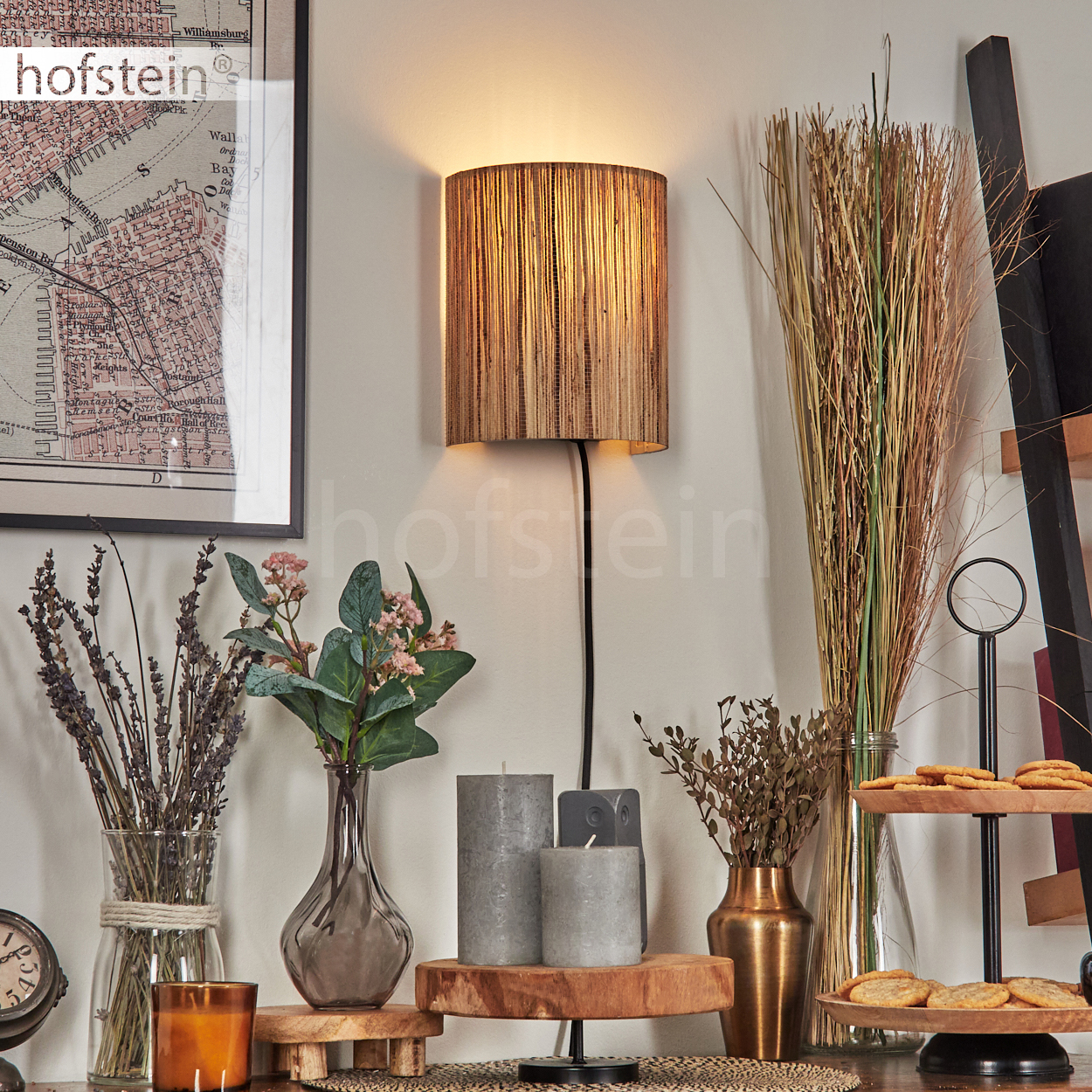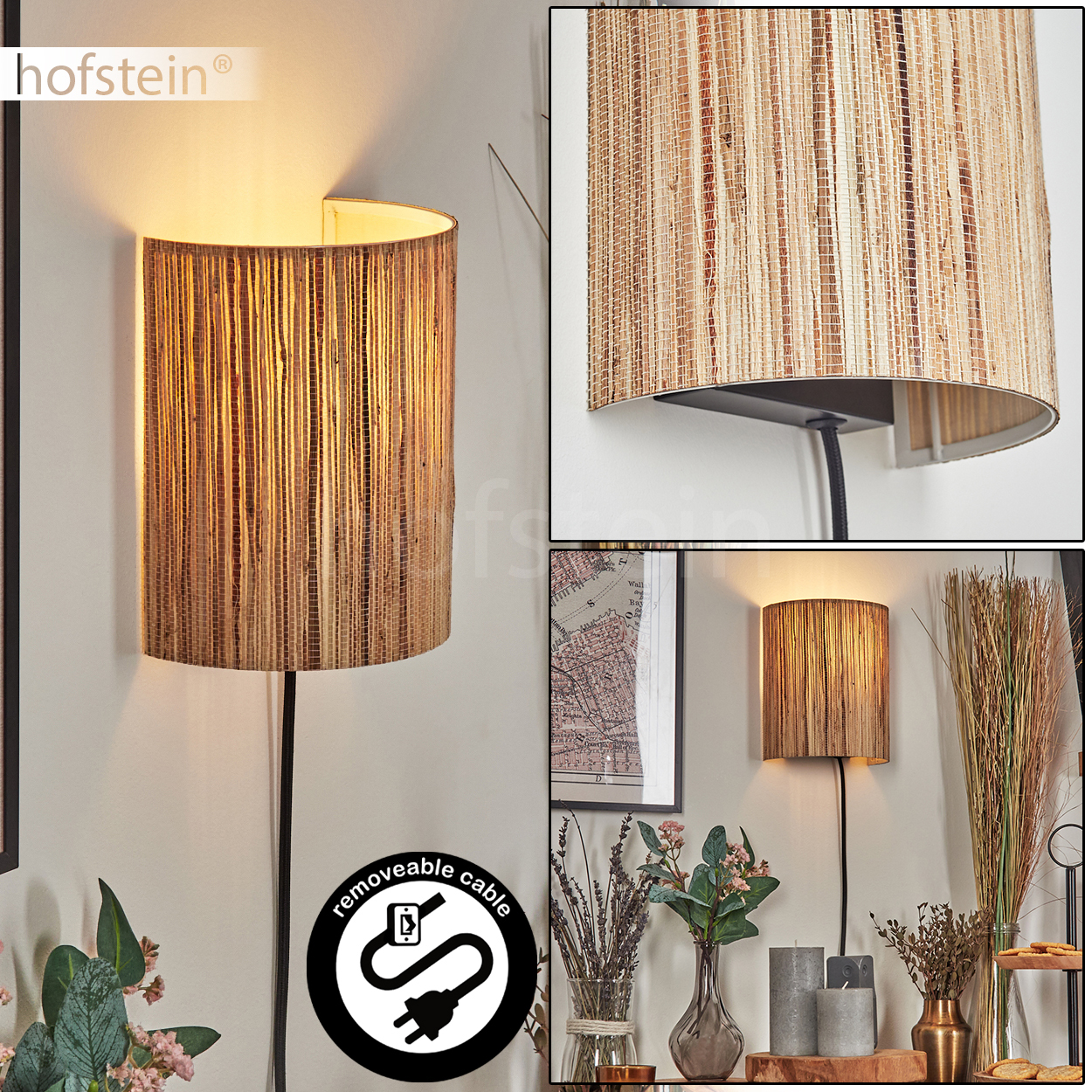 HOFSTEIN Iseo Wandlampe Wohnzimmer Wandleuchte aus Metall/Seegras Schwarz/Natur