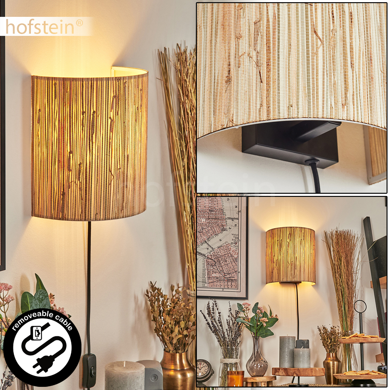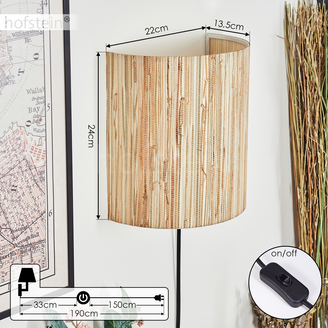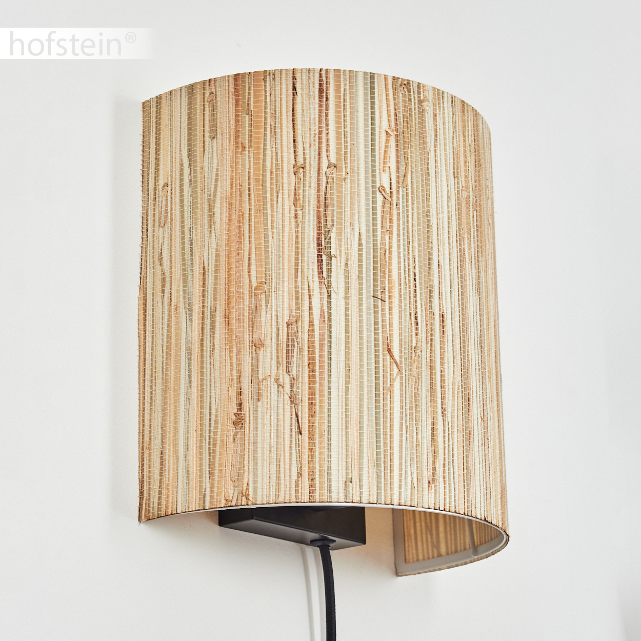 HOFSTEIN Iseo Wandlampe Flur Wandleuchte aus Metall/Seegras in Schwarz/Natur