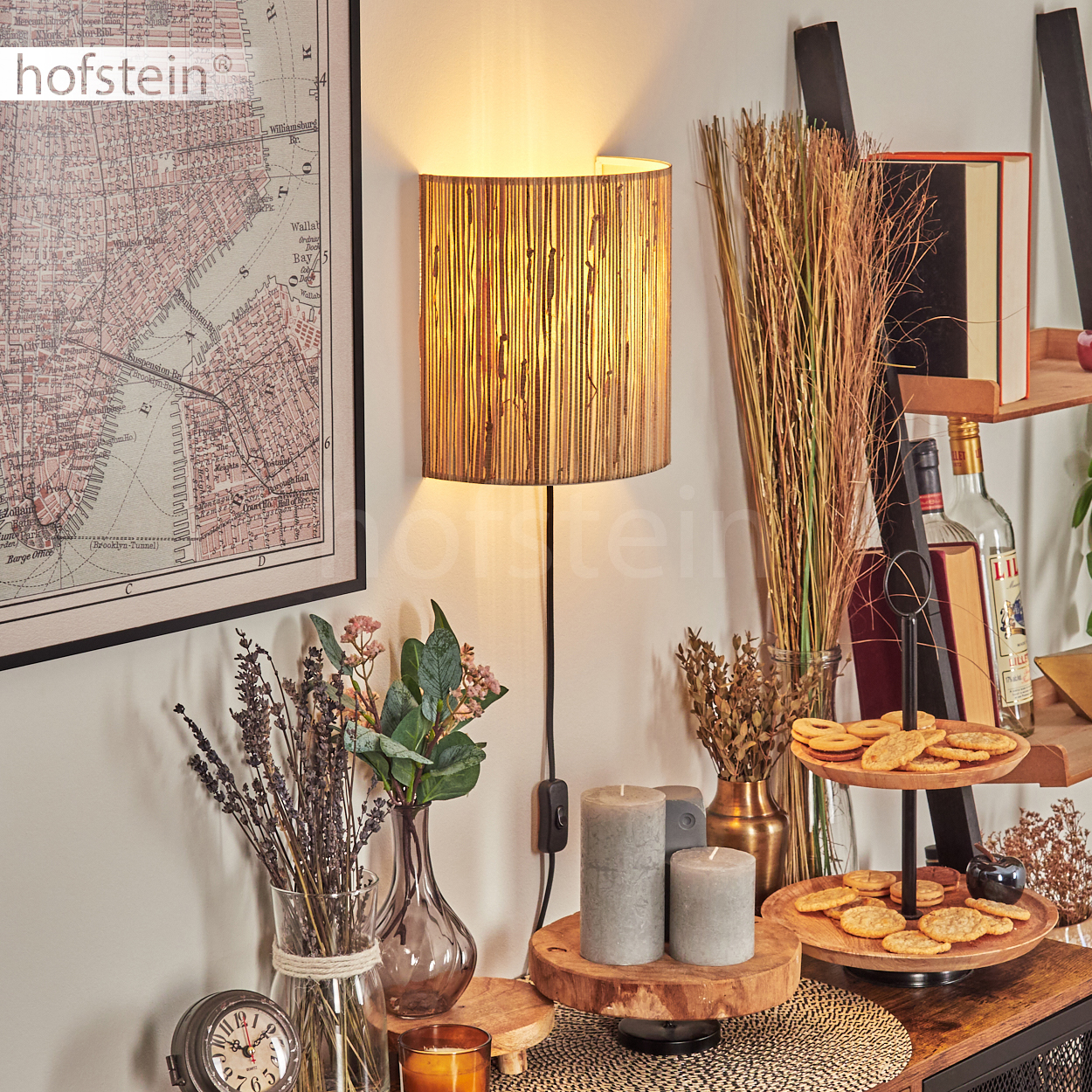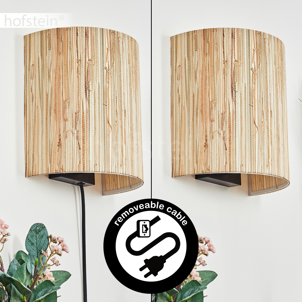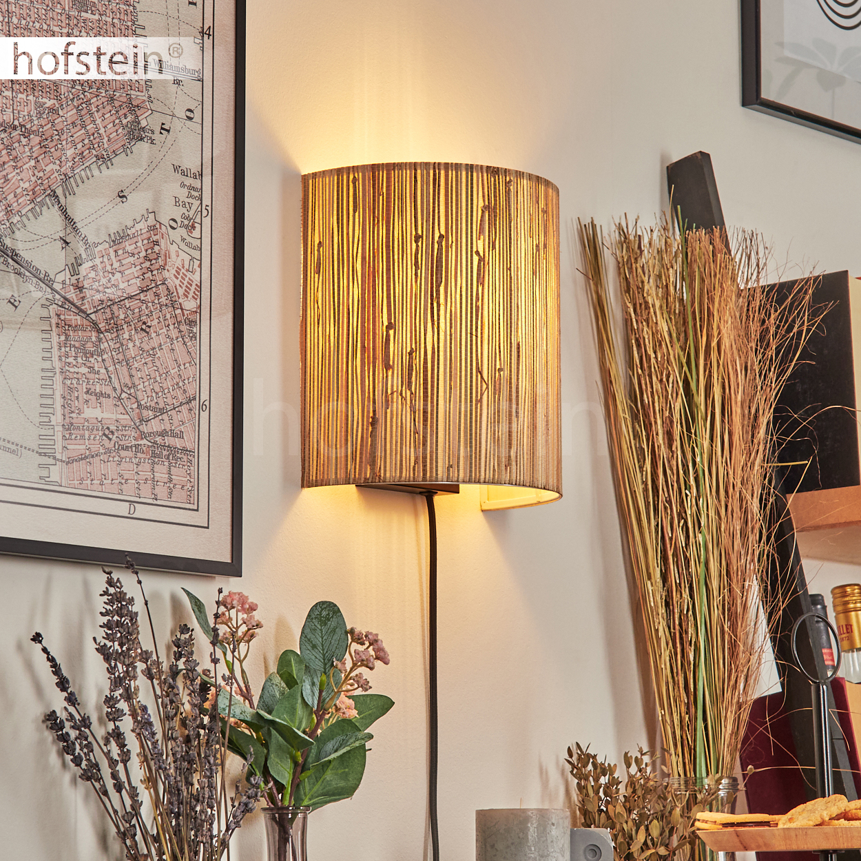 HOFSTEIN Iseo Wandlampe Flur Wandleuchte aus Metall/Seegras in Schwarz/Natur