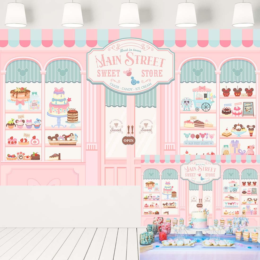 This pastel pink and blue backdrop is made of art fabric, size is 5x3 ft, seamless, suitable for kids birthday party, photo studio, children photography, holiday and stage.