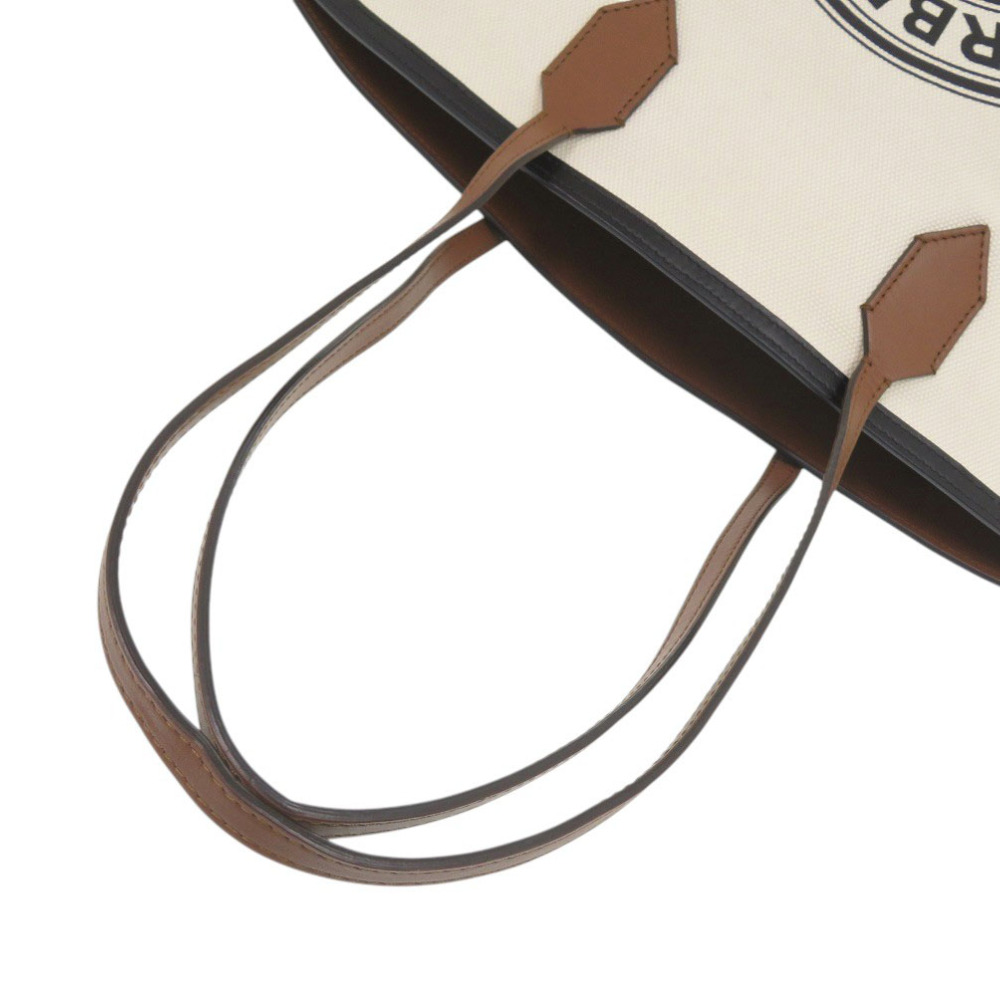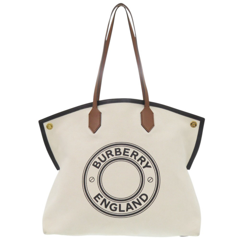 AUTHENTIC BURBERRY Logo Graphic Society Tote Bag White/Brown Canvas/Leather
