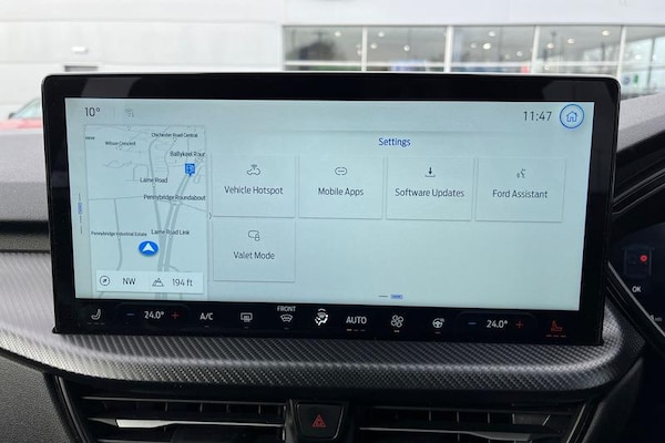 12.3 digital colour instrument cluster, 360 degree view camera, Cross traffic alert with active braking, e-Call (emergency call), Ford easy fuel, Ford SYNC 4 Navigation with 13 touchscreen, DAB radio, emergency assistance, Andriod Auto/Apple CarPlay, 5G modem & Ford Pass connect, Front and rear parking sensors, Hands free power tailgate, Lane keeping aid with lane departure warning, Power assist steering, Selectable drive modes, Service interval indicator, Auto headlamps with high and low beam, Black roof rails, Body colour bumpers, Front LED fog lamps, Large rear spoiler, LED daytime running lights, LED rear lights, LED third brake light, Pop out door edge protectors, Power front/rear windows with global close, Power heated folding door mirrors with puddle lights, memory function and camera, Power opening panoramic roof, Quickclear heated windscreen, Rain sensing wipers, Rear privacy glass, Rear side wing doors, Rear wiper, ST-Line body styling kit, 2nd row sliding seats, Electronic automatic temperature control (EATC), Front and rear head restraints, Partial premium touch sensico upholstery, Rear centre head restraint, Single front passenger seat, Sports seats, 3x3 point rear seatbelts, Airbags - front driver/passenger, front and rear curtain, Drivers knee airbag, Dynamic brake support, Electronic stability control (ESC) and ABS, Evasive steering assist, Ford MyKey Gen 2 safety system, Manual child proof rear door locks, Pre collision assist with autonomous emergency