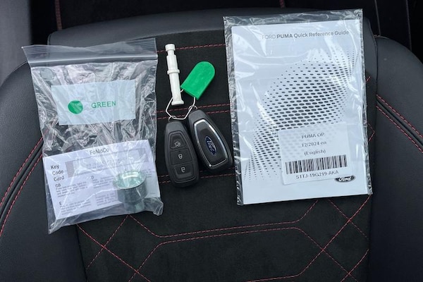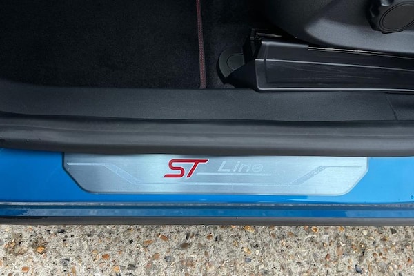 Driver impairment monitor, Emergency call service, Ford easy fuel, Full digital 12.8 instrument cluster, Lane keeping aid with lane departure warning, Power assist steering, Selectable drive modes(Normal, Eco, Sport, Slippery and Trail), Speed sign recognition, Automatic headlights with rain sensing wipers and auto high beam, Front fog lamps, LED daytime running lights, LED rear lamps, LED third brake light, Power foldable heated door mirrors with puddle lamps and puma logo protection, Quickclear heated windscreen, Rear privacy glass, Rear side wing doors, Rear wiper, ST-Line X body styling kit, 3 seat bench in 2nd row, 4 way lumbar support for passenger seat, Centre console with armrest and stowage, Electronic automatic temperature control (EATC), Ford megabox extended bootspace, Front and rear head restraints, Front floor mats, Manual 4 way driver seat adjust with lumbar adjustment, Single front passenger seat, ST-Line X Premium synthetic leather upholstery, 3 rear seatbelts, Child safety lock, Electronic stability control (ESC) and hill start assist, Pre-collision assist with autonomous emergency braking, pedestrian/cyclist detection & post-collision braking, Tyre pressure monitoring system (TPMS)