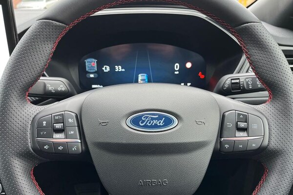 12.3 digital colour instrument cluster, 360 degree view camera, Cross traffic alert with active braking, e-Call (emergency call), Ford easy fuel, Ford SYNC 4 Navigation with 13 touchscreen, DAB radio, emergency assistance, Andriod Auto/Apple CarPlay, 5G modem & Ford Pass connect, Front and rear parking sensors, Hands free power tailgate, Lane keeping aid with lane departure warning, Power assist steering, Selectable drive modes, Service interval indicator, Auto headlamps with high and low beam, Black roof rails, Body colour bumpers, Front LED fog lamps, Large rear spoiler, LED daytime running lights, LED rear lights, LED third brake light, Pop out door edge protectors, Power front/rear windows with global close, Power heated folding door mirrors with puddle lights, memory function and camera, Power opening panoramic roof, Quickclear heated windscreen, Rain sensing wipers, Rear privacy glass, Rear side wing doors, Rear wiper, ST-Line body styling kit, 2nd row sliding seats, Electronic automatic temperature control (EATC), Front and rear head restraints, Partial premium touch sensico upholstery, Rear centre head restraint, Single front passenger seat, Sports seats, 3x3 point rear seatbelts, Airbags - front driver/passenger, front and rear curtain, Drivers knee airbag, Dynamic brake support, Electronic stability control (ESC) and ABS, Evasive steering assist, Ford MyKey Gen 2 safety system, Manual child proof rear door locks, Pre collision assist with autonomous emergency