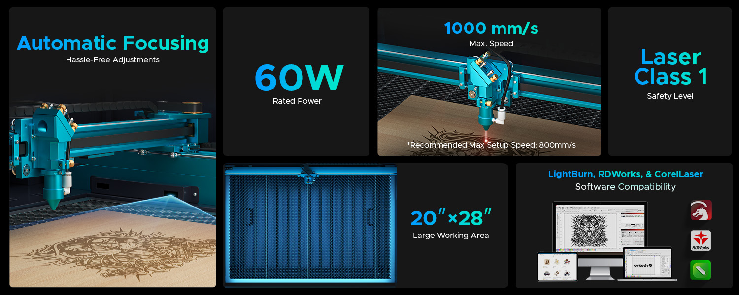 Compatible Software (not incl.): LightBurn, CorelLaser, RDWorks