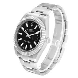 Stainless steel oyster case 41.0 mm in diameter. Rolex logo on the crown.