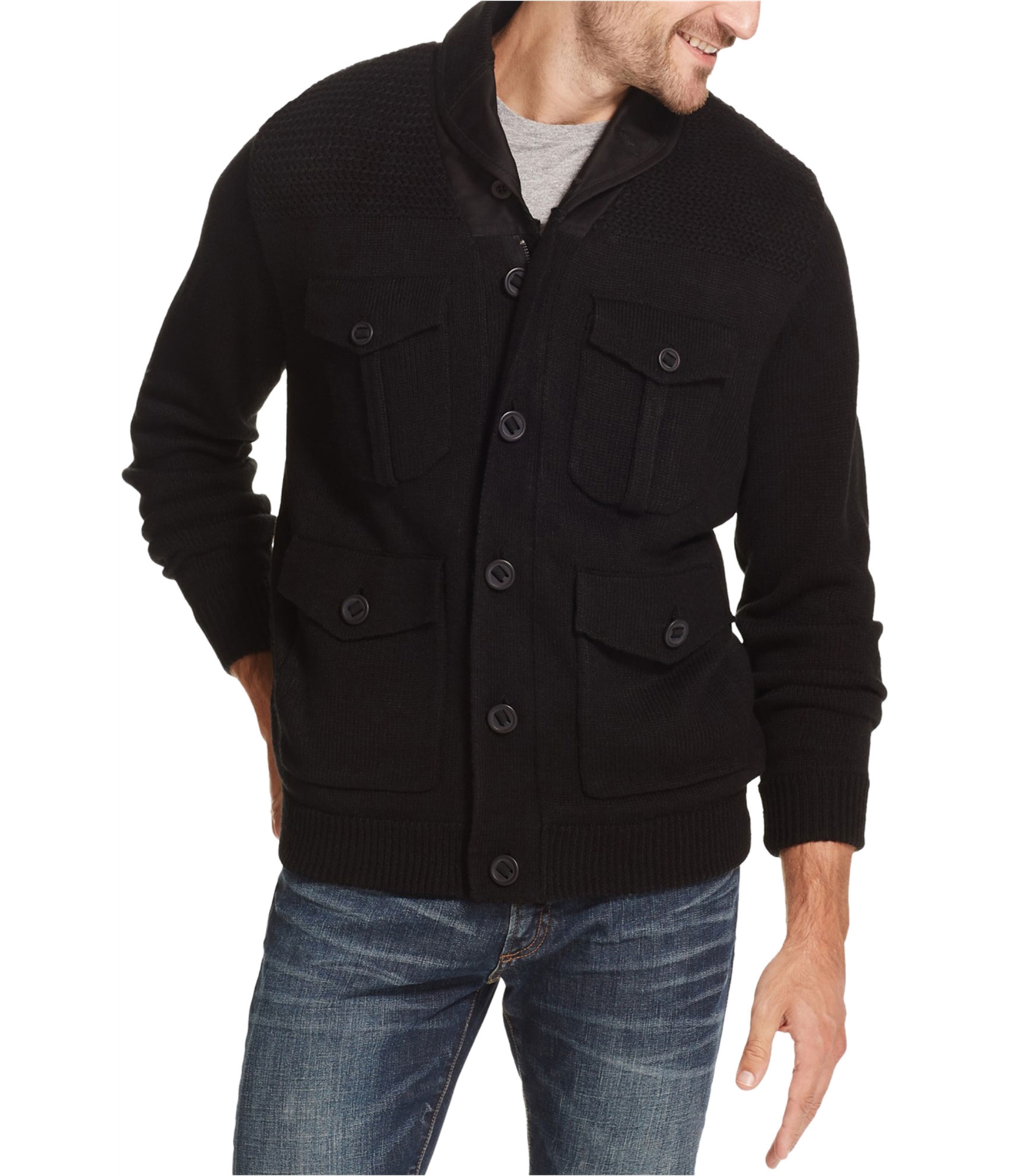 MODERN MILITARY-INSPIRED STYLE: The solid pattern and rugged details, like the button accents and multiple pockets, lend a modern, military-inspired edge to this versatile cardigan, perfect for the adventurous man.