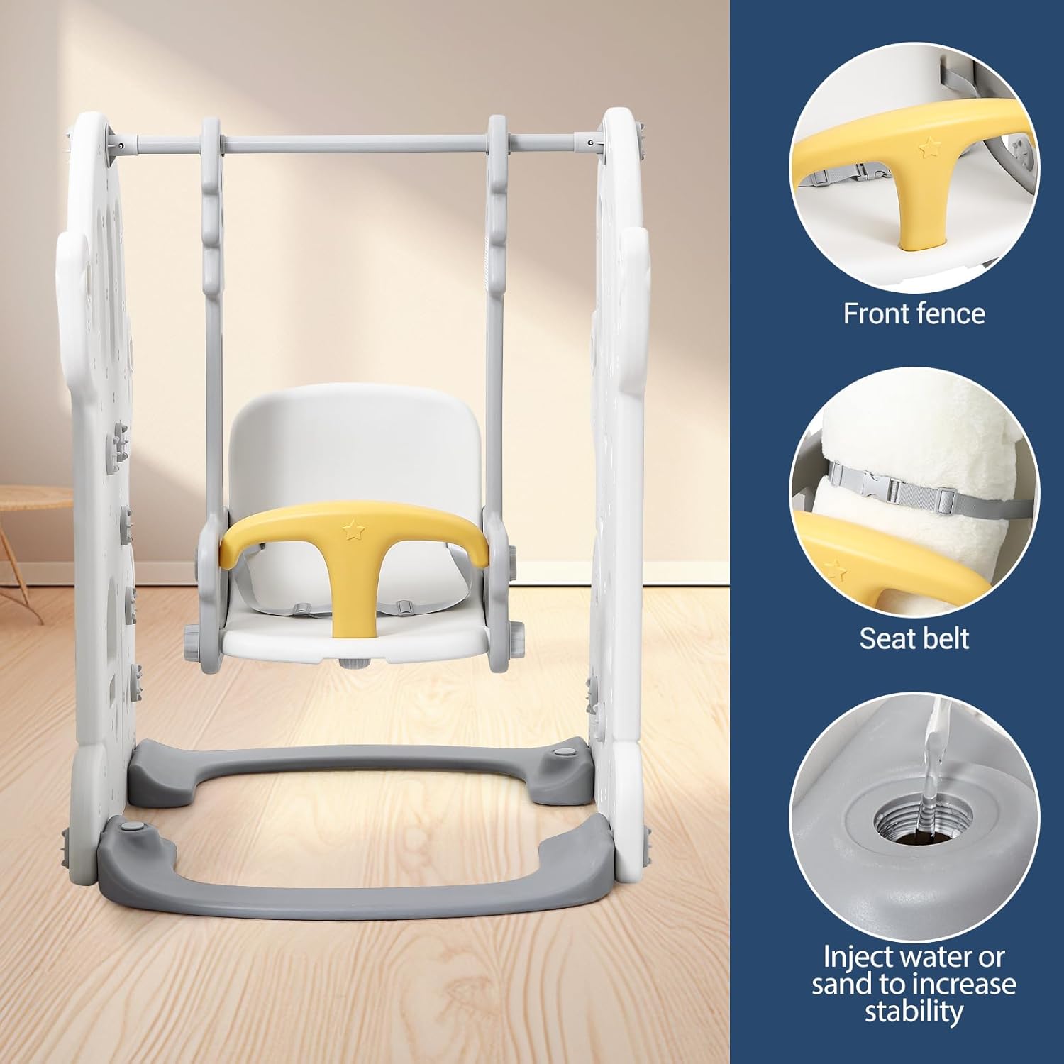 ๐ฏ Versatile 7-Activity Play Center: This toddler playset combines a slide, adjustable swing, basketball hoop, soccer goal, golf, and ring toss games in a single, space-saving unit. It offers diverse play options to keep your little one engaged and active for hours.