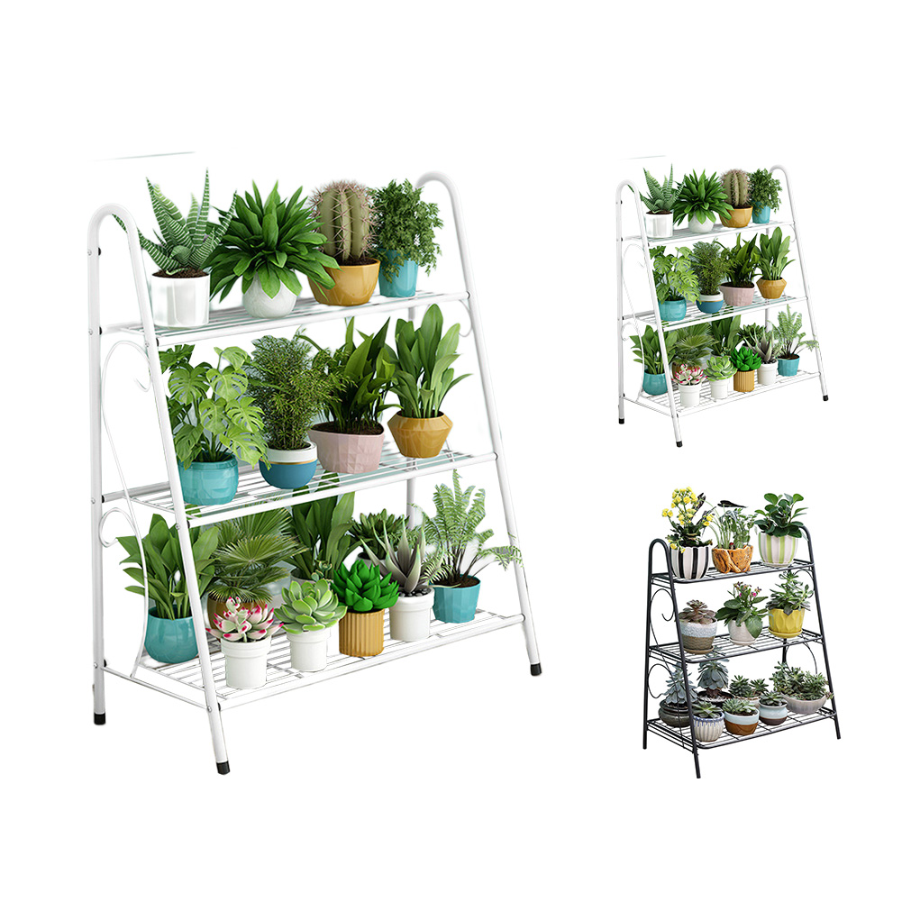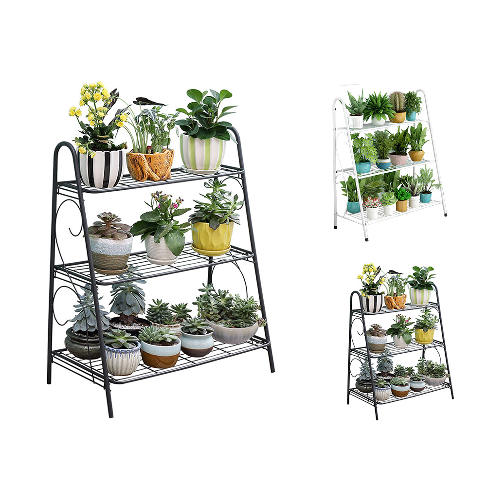 **Metall-Pflanzenständer:** Der dreistöckige Eisen-Pflanzenständer verfügt über eine hochtemperatur-beschichtete Matt-Schutzschicht, die feuchtigkeitsbeständig und rostfrei ist. Schmutzabweisend und leicht abwischbar, eignet er sich für den Einsatz in Innen- und Außenbereichen.