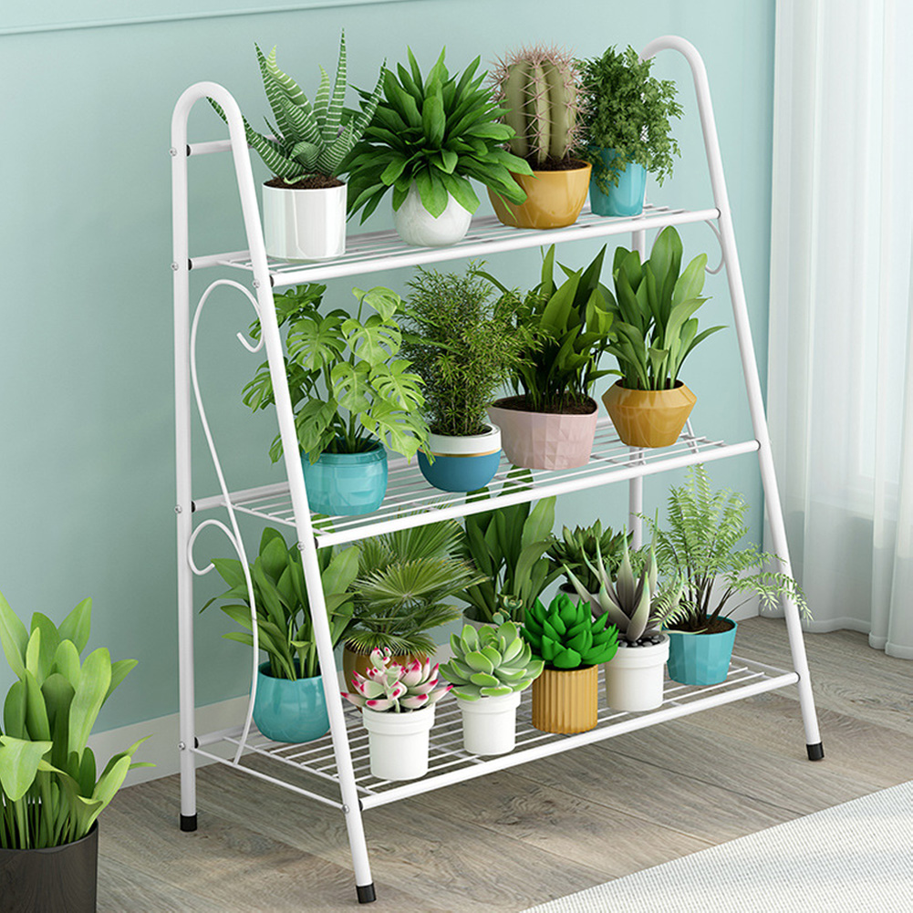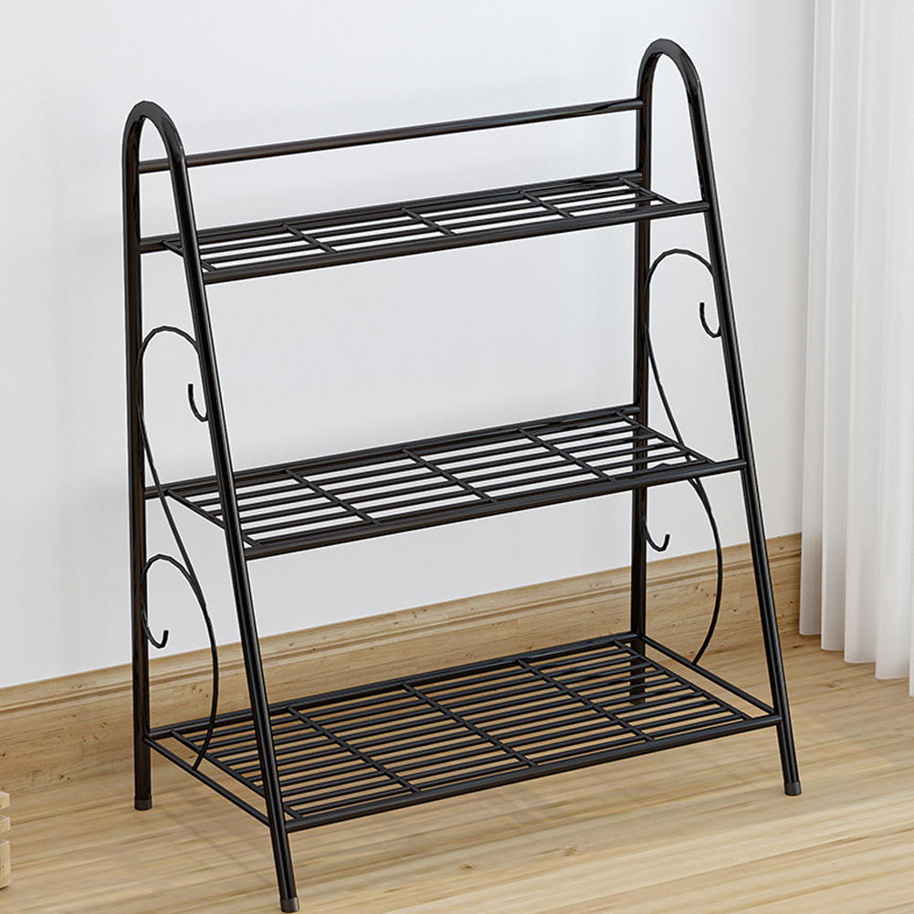 **Multifunktional:** Das Metall-Regal kann nicht nur als Pflanzenständer, sondern auch als Schuhregal oder Ablageregal genutzt werden. Das Etagen-Design verhindert das Herunterfallen von Gegenständen, und die rutschfesten Füße schützen den Boden zuverlässig vor Kratzern.