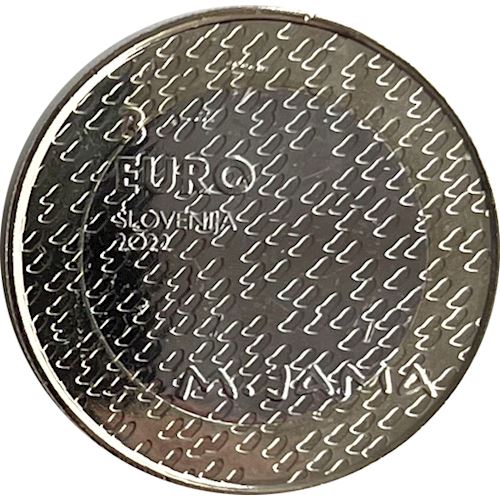 Die Münze zeigt drei junge Birkenstämme (Matijas Werk "Birke in Laxenburg" 1909). Stellt den jungen Künstler, Maler dar, der seinen eigenständigen kreativen Weg einschlägt. Seine Pinselstriche bilden die Grundlage für einen dynamischen, sanft geprägten Hintergrund, der an die Oberfläche impressionistischer Gemälde erinnert und das Nomadenleben des Malers darstellt.