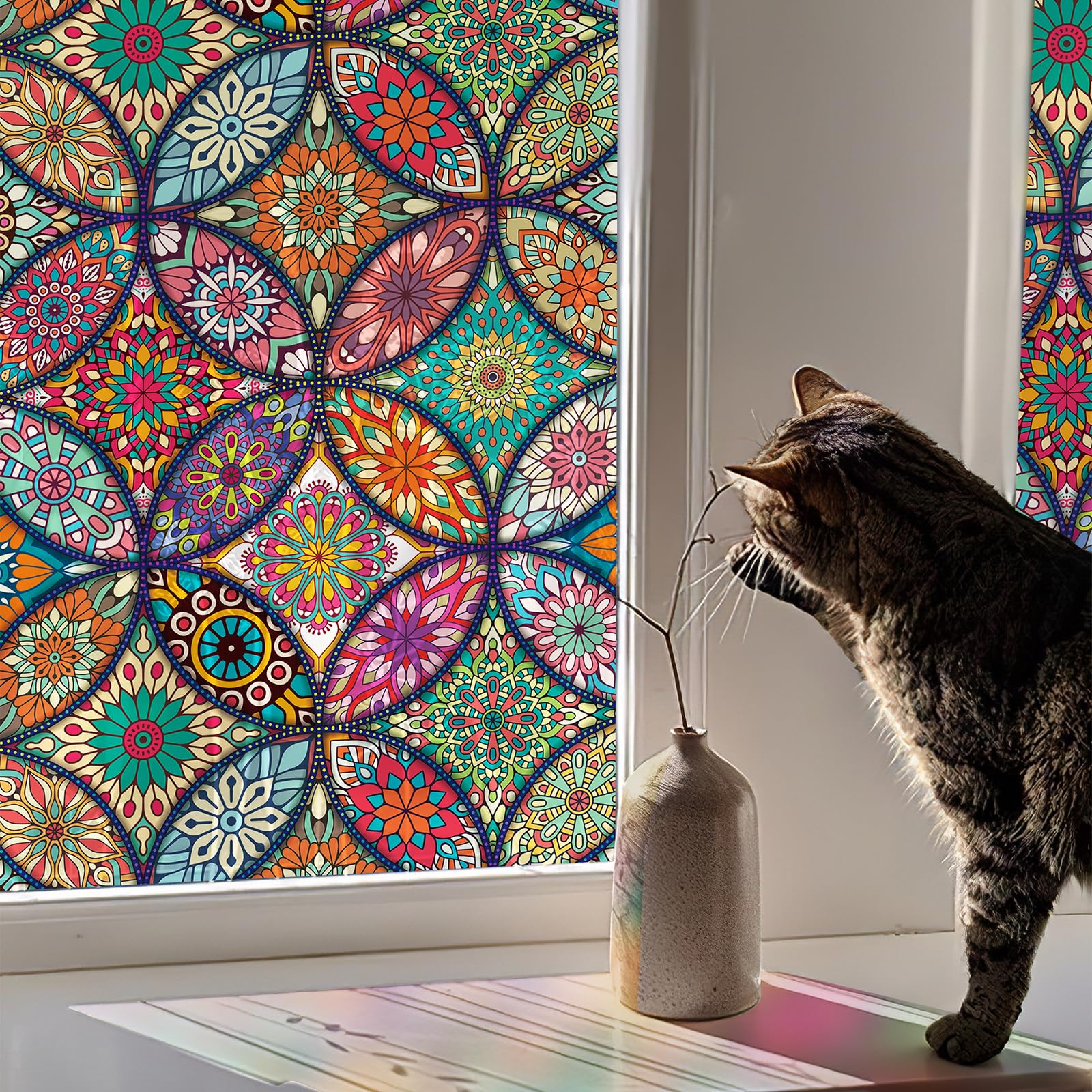 Stained Glass Window Film Privacy Decorative Tinting 78.7"x17.3", Multicolor
