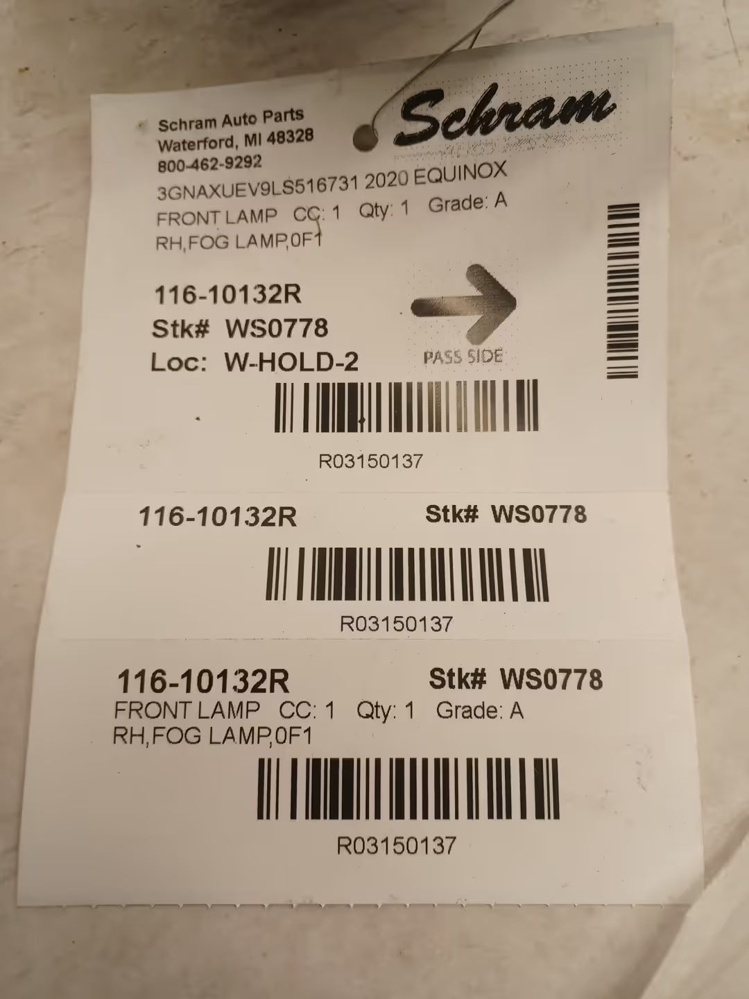 Fog Light / Running Light not only enhances your safety, but it also adds a touch of style to your vehicle. We take pride in offering tested and inspected fog lamps, all in perfect working condition. As a trusted automotive recycling company since 1923, we provide quality original equipment fog lights that continue to serve an essential role in helping others repair, restore, and enhance their vehicles. Rest assured that all of our fog lamps have undergone testing and inspection to ensure their flawless performance. Please note that the fog lamps are sold without grilles or bezels, unless stated otherwise. Wear and scratches from normal use are expected on this item. To ensure the perfect fit, refer to the 'Fitment' section of this listing for precise compatibility. We strongly recommend confirming compatibility before making a purchase to ensure a seamless fit. Your Questions Are Important If you have any questions or need further information, please ask us before making a purchase! We're here to provide the details you need to make an informed decision. Illuminate the road ahead with reliable Fog and Running Lights from Schram Auto and Truck Parts, Inc. Join us in our commitment to providing top-notch solutions while enhancing your vehicle's safety and style.