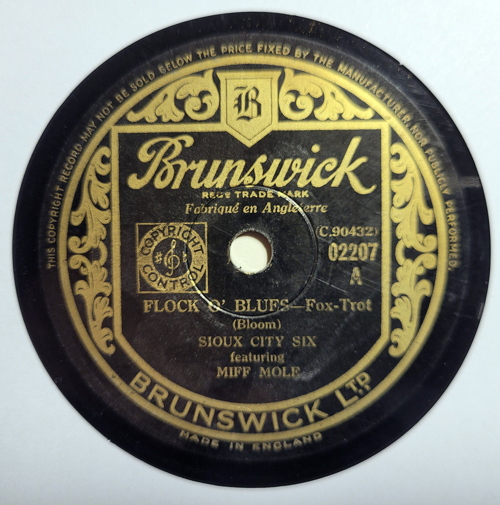 SIOUX CITY SIX BIX BEIDERBECKE MIFF MOLE I'm Glad/Flock O' Blues BRUNSWICK UK 02207