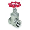 Gate Valve, For Media Water, Body Material 316 Stainless Steel, Nominal Valve Size 1 1/2 in, ANSI Flange Class Not Applicable, Maximum Pressure - Operating 200 psi, Maximum Pressure - Steam 15 psi, Coefficient of Volume (Cv) 117, Stem Type Non-Rising, Stem Material 316 Stainless Steel, Wedge Style Solid, Wedge Material 316 Stainless Steel, Seat Material PTFE, Seal Material PTFE, Handle Type Wheel, Bonnet Material 316 Stainless Steel, Bonnet Style Screw-In, Connection Gender - Side 1 Female