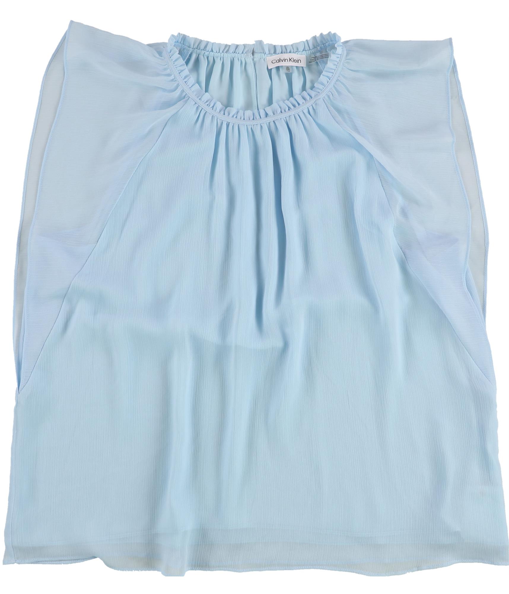 Calvin Klein Womens Chiffon Flutter Sleeve Pullover Blouse, ltpasblue, XL