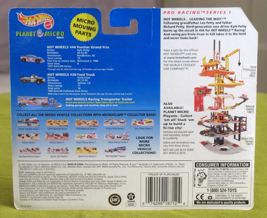 ![]() 🏁 Hot Wheels Planet Micro HW Pro-Racing Team set Race Car & Trucks + Microscape in Blister This listing is for an unopened package Hot Wheels Plant Micro HW Pro-Racing Team set Race Car, 2 Trucks + Microscape. This set includes a HW #44 Pontiac Grand Prix, HW #28 Ford Truck, HW Racing Transporter Trailer and pit crew figures. The package is sealed and the cars have not been removed. Some of the rubber holds have broken from age with no damage to any vehicles.The package has some storage wear. Please see photos for details and message if you have any questions. ![]() ![]() ![]() ![]() ![]() ![]() |