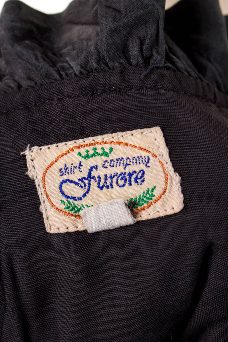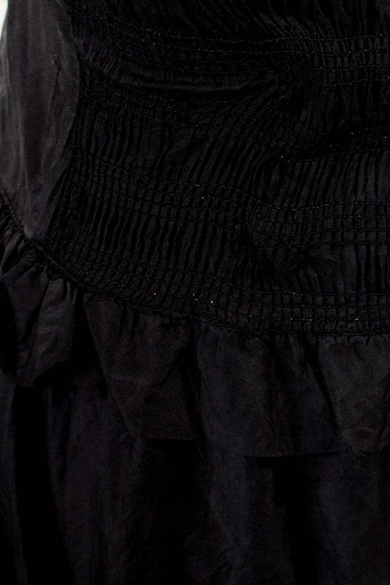 abito romantico realizzato in tessuto di seta nera con volant