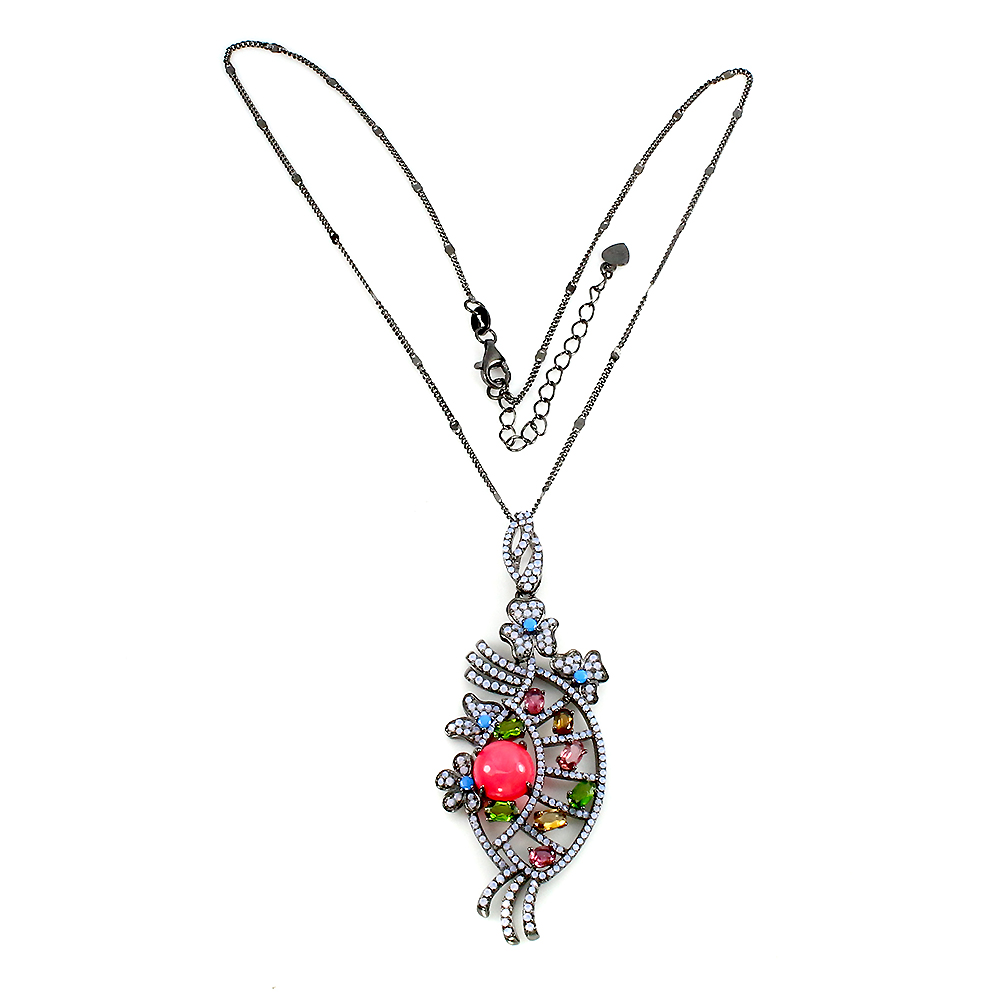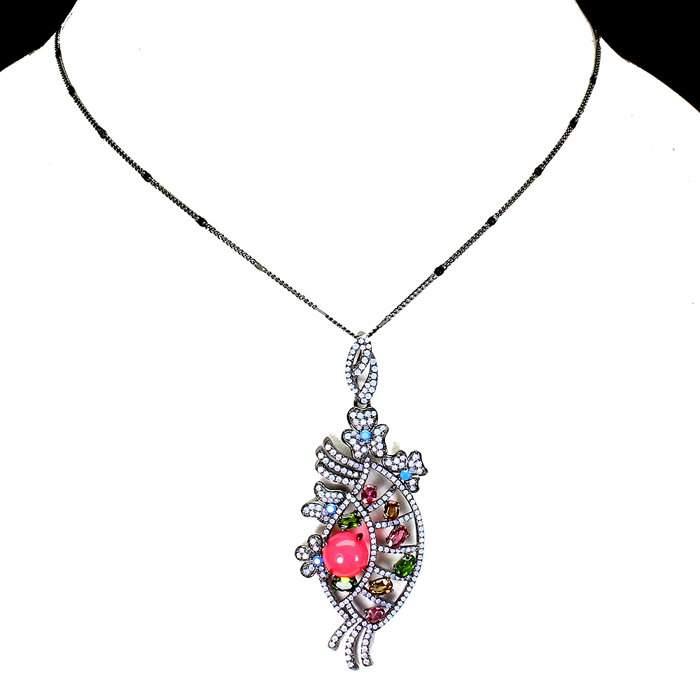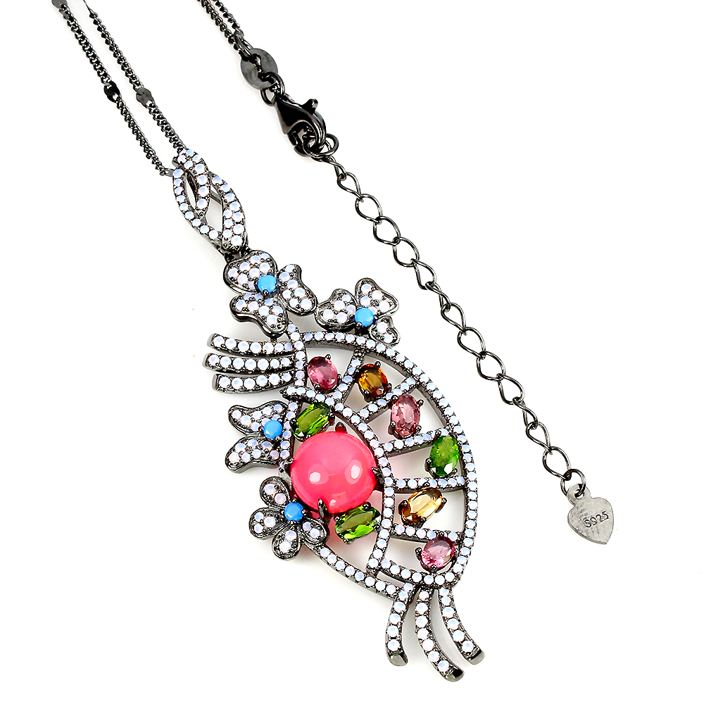 Sommer 925 Silber Halskette Rund Pink Feuer Opal Turmalin Edelstein Schmuck