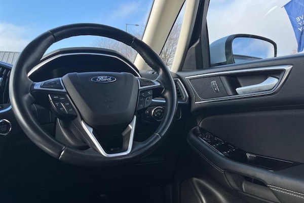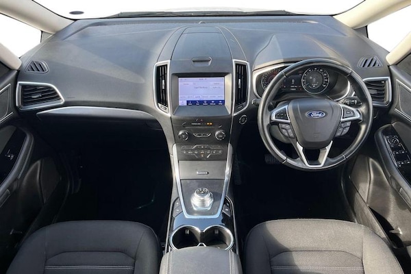 'Ford Power' starter button, Easy fuel capless refuelling system, Front and rear parking sensors, Hydraulic PAS, Lane keeping aid with rain sensing front wipers, Lights on warning, Outside temperature display, Traffic sign recognition, Trip computer, 'Quickclear' heated windscreen/heated washer jets, Auto dimming rear view mirror, Automatic headlights, Automatic rain sensing wipers, Automatic wipers with variable sensitivity adjustment, Body colour bumpers, Body colour door mirrors, Chrome trim to lower side windows, Dual exhaust pipes, Electric folding door mirrors, Electric front and rear windows + one touch + global open/closing, Front fog lights, Headlight courtesy delay, Heated rear window, LED daytime running lights, Rear privacy glass - dark glass to rear windows, Silver roof rails, Tailgate wiper - intermittent with electric wash, 2 height adjustable headrests - 3rd row, 2 individual fold flat 3rd row seats, 3 height adjustable headrests - 2nd row, 3 individual fold flat 2nd row seats, Axis cloth upholstery, Driver/passenger sunvisors with illuminated vanity mirrors + covers, Dual zone air conditioning, Front and rear velour floor mats, Front headrests, Front seat armrests, Front seat storage pockets, Front seatback tables, Front sports seats, Isofix child seat attachment, Leather gear knob, Leather trimmed steering wheel, Manual adjustable front seats + lumbar support, Pollen filter, Reach + rake adjustable steering column, Rear cupholders, Rear seat easy entry, Sunglasses