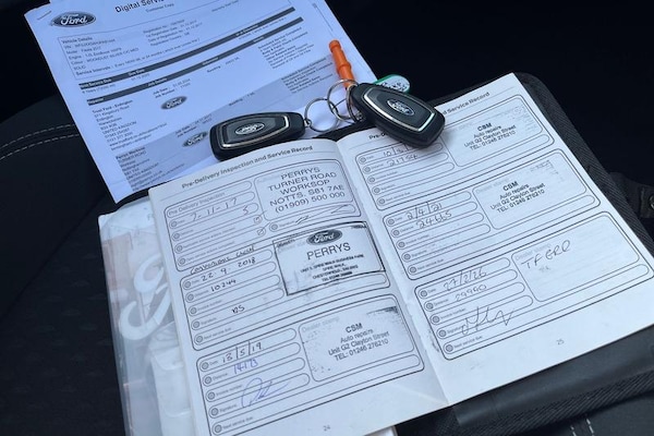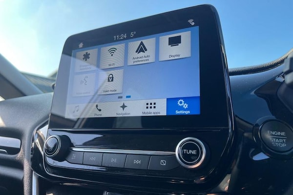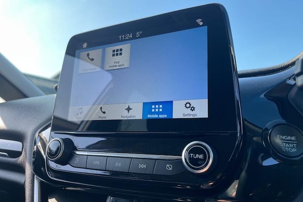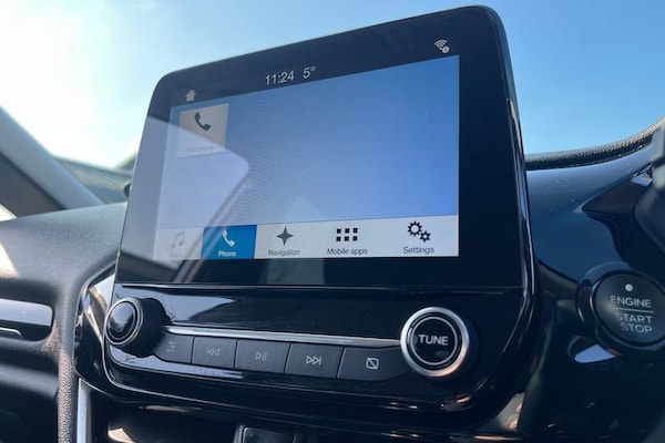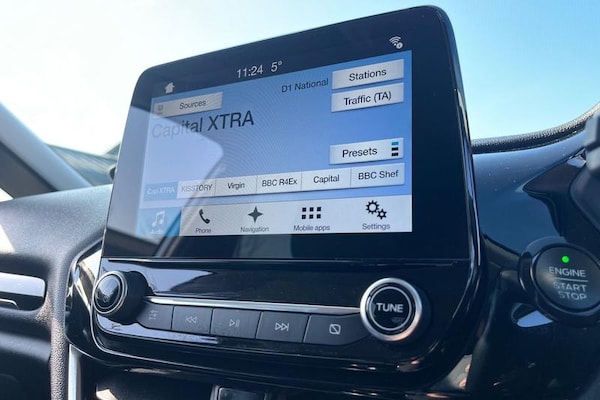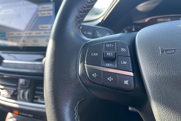 Bluetooth system, Electric power steering, Ford easy fuel, Ford SYNC 3 Navigation system incl 8 touchscreen, 7 speakers, FordPass connect, Apple carplay, android auto, voice control and emergency assistance, Rear parking distance sensors, Selectable drive modes (Normal, Sport, Track), Trip computer, Body colour bumpers, Body colour door handles, Body colour rear spoiler, Body coloured electrically operated and heated door mirrors with side indicators, Chrome beltline trim, Chrome front grille, Chrome lower window surround, Cornering front fog lights, Electric front windows/one touch facility, Electric rear windows, Quickclear heated windscreen, Rain sensing wipers and auto dimming rear view mirror, Rear privacy glass, Rear wiper, 3 spoke leather trimmed steering wheel with audio control, 60/40 split folding rear seat, Adjustable head restraints, Boot carpet, Centre console with opening armrest, 2x cupholders, 12v and USB, Chrome inner door handles, Cloth upholstery, Footwell illumination, Front floor mats in velour, Front map reading lights, Front seat and rear pockets, Illuminated glovebox, Leather gaiter, Load area light, Luxury woven headliner, Manual 2 way passenger seat adjust, Manual 4-way driver seat adjust, Manual air conditioning, Overhead console with sunglasses holder, Pollen filter, Rake/reach adjustable steering wheel, Sensico wrapped steering wheel, 3 point seatbelts on all rear seats, ABS+EBA, Curtain airbags, Driver and passenger airbags, Drivers knee