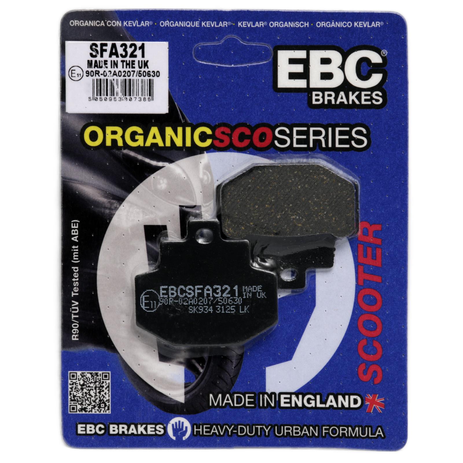 EBC Brakes Organic replacement scooter brakes, the SFA series organic range are a great choice for everyday commuter use on modern scooters and lighter motorcycles. SFA pads provide the instantly available stopping power desired for urban scooter brakes.