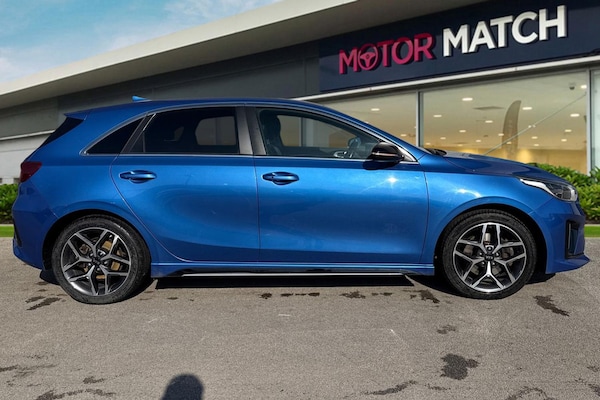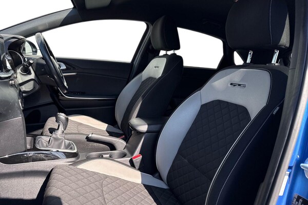 This Kia Ceed 1.6 CRDi GT-Line Euro 6 (s/s) 5dr finished in blue combines sharp GT-Line styling with impressive efficiency and practicality. Powered by a 1.6-litre diesel engine producing 134bhp and paired with a manual transmission, it delivers smooth performance alongside excellent fuel economy, making it ideal for both daily commuting and longer motorway journeys. The exterior stands out with stylish 17in GT-Line alloy wheels and distinctive design. The gloss black and satin chrome radiator grille, chrome window surrounds and body-coloured styling elements create a sleek and modern appearance. LED daytime running lights and projection headlights improve visibility, while rear privacy glass adds both style and comfort. The boot provides practical space for everyday use such as shopping or travel, and thanks to the versatile 60-40 split-folding rear seats you can easily extend the load area. Inside, the cabin reflects the GT-Lines sporty character with a leather D-cut steering wheel featuring grey stitching, aluminium pedals and gloss black interior trim. Heated front seats and a heated steering wheel provide welcome comfort during colder winter mornings. Dual automatic climate control allows both driver and passenger to maintain their preferred temperature, helping keep the cabin comfortable throughout the journey. Technology includes an 8-inch touchscreen satellite navigation system with European mapping, DAB radio, Bluetooth connectivity and Apple CarPlay and Android...