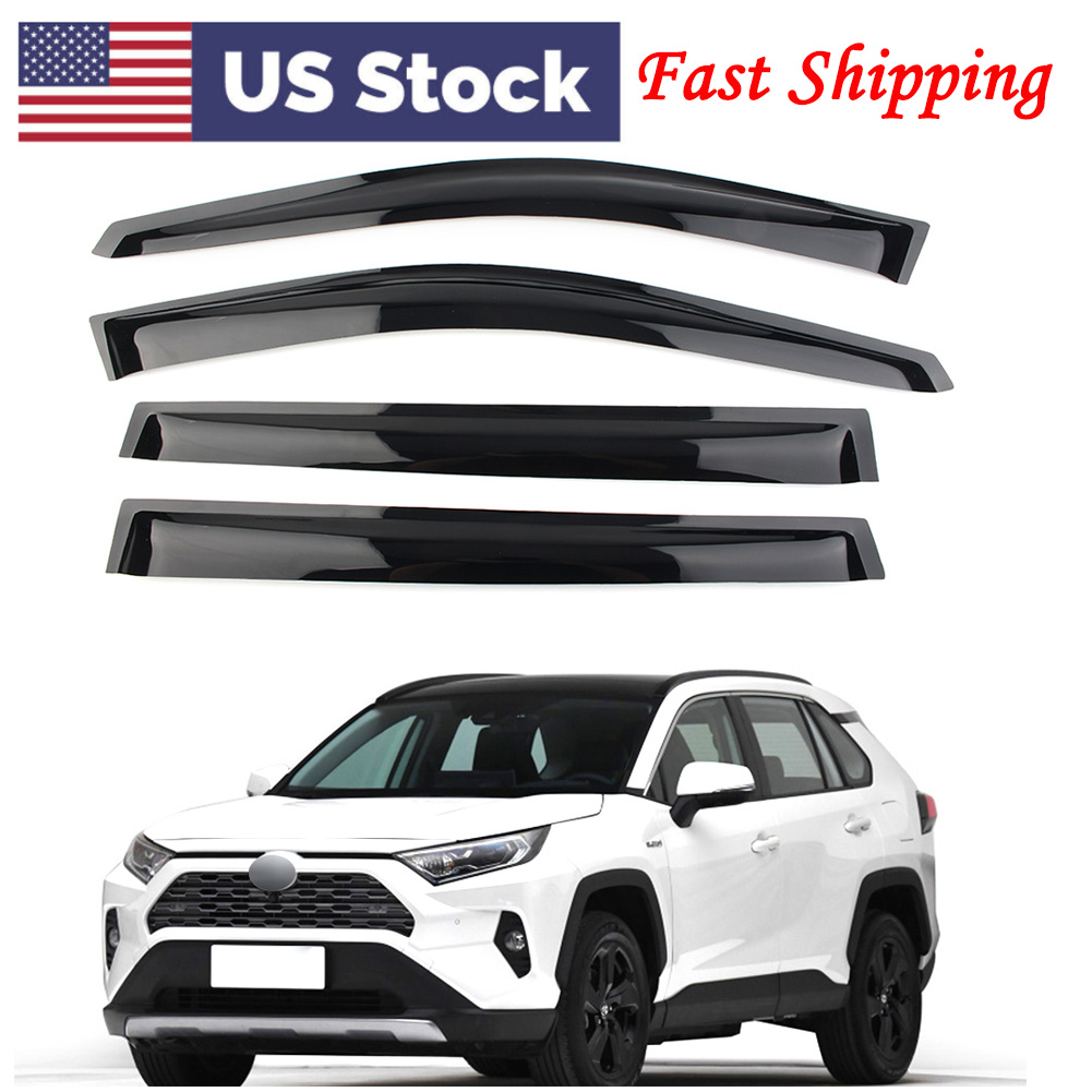 Rain Guard Deflectors Fits for Toyota RAV4 2019-2020 Window Visor Vent Sun Shade Specification: Material:high quality Acrylic material Color:Tinted Dark Smoke Type:Tape On/External Placement on Vehicle Left,Right,Front,Rear Fitment Type Direct Replacement Style:Outside Mount Style Pls Note Stick on to the door & above the windows Package Includes: 1 Set of 4 piece(2 left and 2 Right) Window Visors Vehicles Fitments: for Toyota RAV4 2019-2020 Installation:with Automotive-Grade Double-Sided tapes Feature: *Made of Made-in Acrylic in scratch-proof and UV cutting, and prevent drivers’ eyes from being hurt by strong sunshine in the sunny day, allowing circulation of fresh air and keeping rains out of the open-windows. *Designed with precise engineering data of vehicles’ body to ensure correct fitment, and dark smoke tinted as the classics style. *Keep the car interior cool even parked in the strong sunshine with windows cracked, and prevent fog on mirrors in winter with A/C off. *No noise of wind when driving in high speed. *Quick and easy installation with self adhesive tape, without drilling your beloved car. *With the integrated design of the car body, the lines are unified and perfect. It can be matched with any color car to add beauty to your car. *The gospel of smokers, you can smoke leisurely in the car when it is raining, and you don't have to worry about the rain falling in after opening the window. Installation Instructions: *Full tape strength is achieved after 72 hours. *Allow tape to cure for 4 hours before driving vehicle. Reverse the above procedure to remove the product. *Do not install below 50°F. Ideal installation temperature is 70°F-105°F. To Clean: Use mild detergent and water solution. Do NOT use abrasives or harsh solvents. Avoid the use of automatic “Brush Style” car washers.