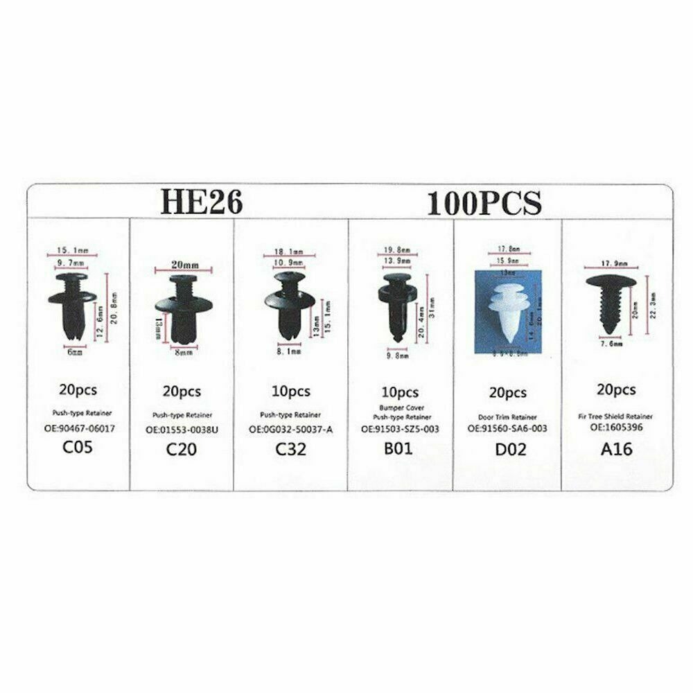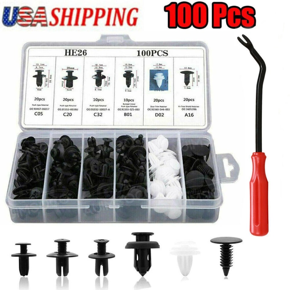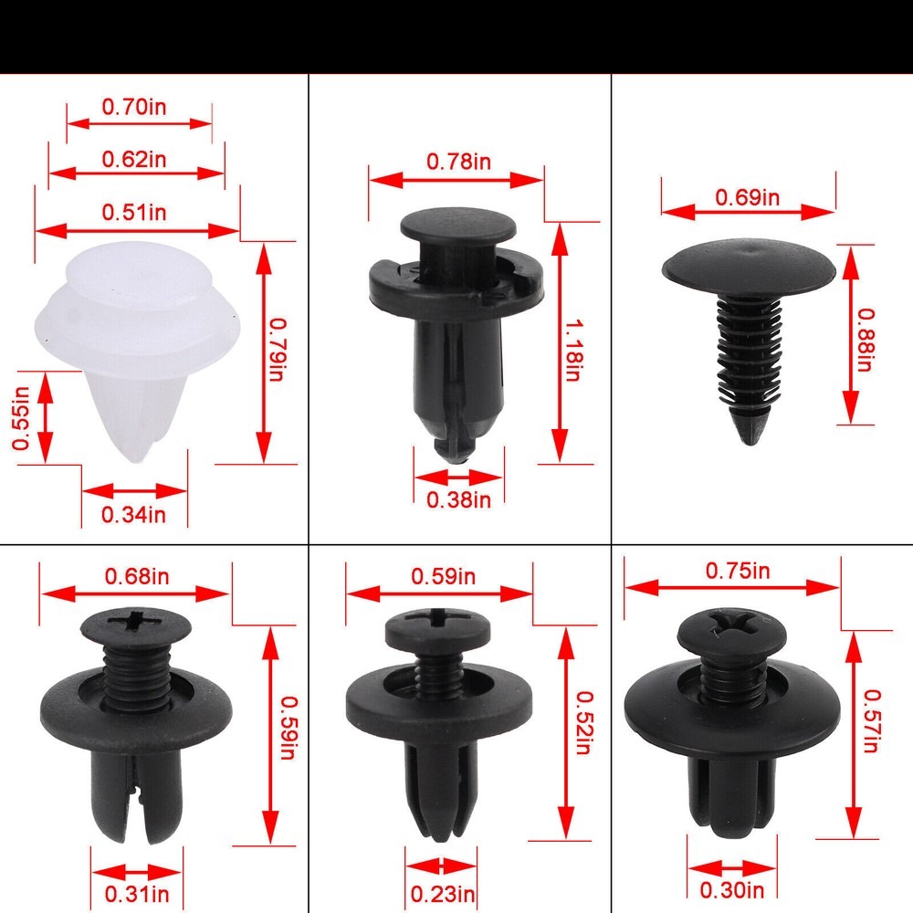 1. Great Assortment Push Retainer Kit with 6 popular size. You can find 100PCS automotive push type retainer kit in the box and no need to go to a auto parts store to look for different fasteners.