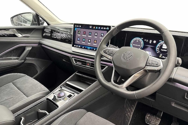 Finished in sophisticated Deep Black Pearl, this Volkswagen Tiguan 1.5 eTSI 150 Elegance perfectly blends premium comfort, advanced technology and refined hybrid efficiency. With its sleek metallic paintwork, strong SUV stance and striking 19"" Catania Black diamond-turned alloy wheels, the Tiguan Elegance delivers a commanding presence on the road while maintaining the practicality and versatility that makes it such a popular family SUV. Inside, the cabin is beautifully finished in Soul Black with Ceramique accents, creating a refined and modern interior that feels both spacious and luxurious. Volkswagens high-quality materials and thoughtful design ensure excellent comfort for both driver and passengers, making it an ideal choice for everyday driving as well as longer journeys. Technology is a standout feature, with the Infotainment Package providing an advanced navigation system, IDA voice assistant with voice enhancer, and inductive wireless smartphone charging for seamless connectivity. Multiple USB-C ports with up to 45W charging ensure everyones devices stay powered, while the intuitive infotainment system keeps navigation, media and vehicle information easily accessible. This Tiguan also benefits from the Driver Assistance Package, adding impressive features such as Area View and rear view camera, Travel Assist, Lane Assist, and Emergency Assist for a more relaxed and confident driving experience. Electrically folding, auto-dimming door mirrors with surround lig...