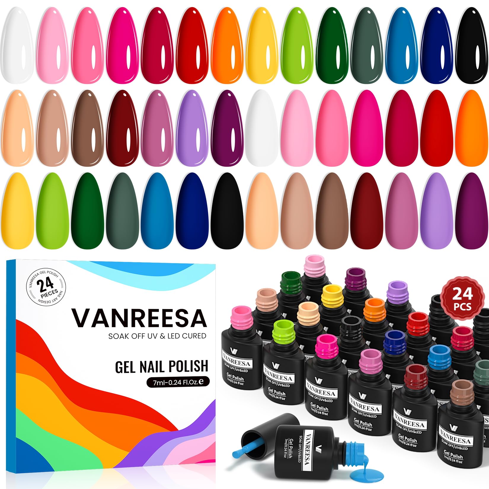 VANREESA 24 Pcs Gel Nail Polish 0.24 Fl Oz (Pack of 24), Relaxing Vacation