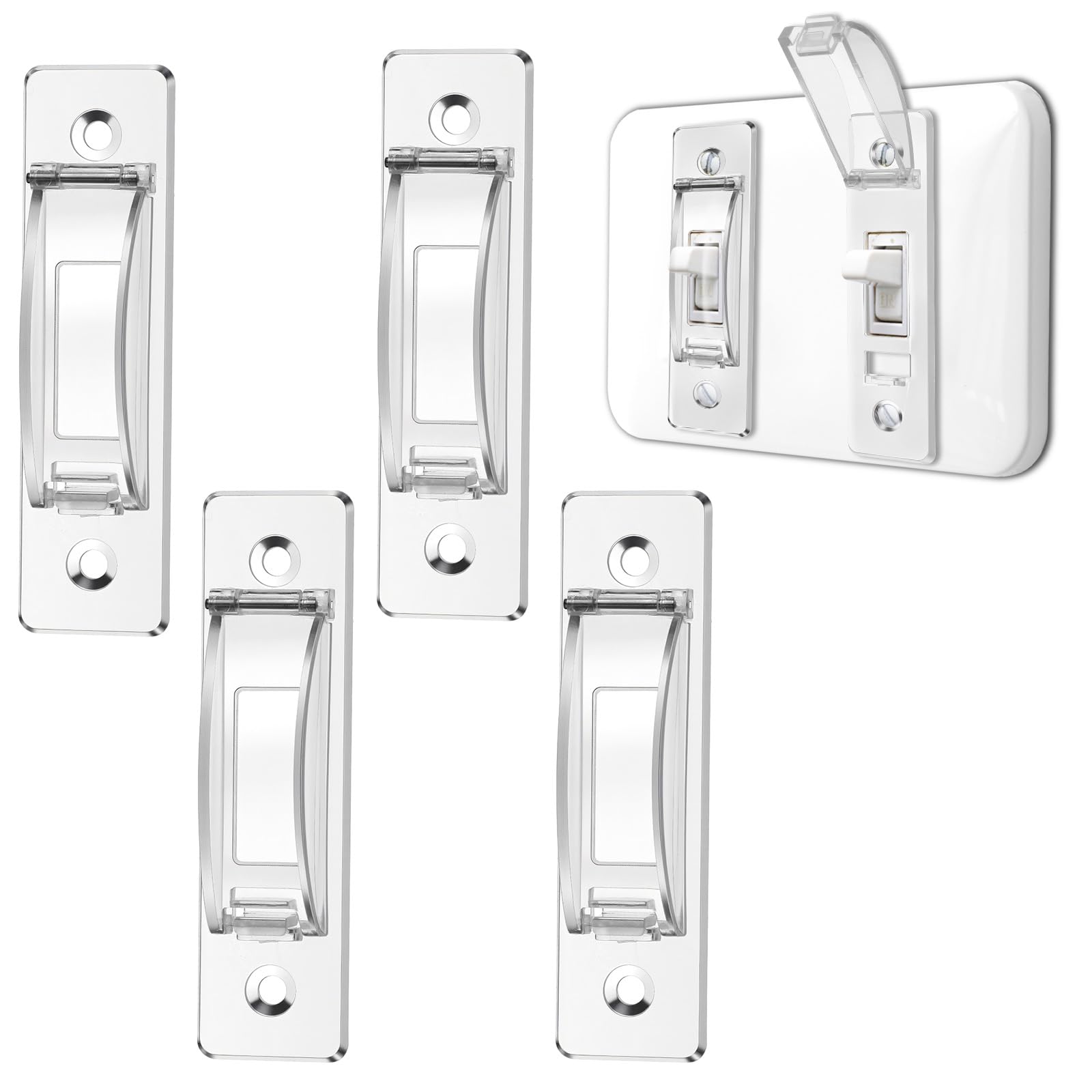 4 Pack Wall Switch Guards Light Switch Outlet Covers ChildProof Wall Switches Guard Keeps Plate Covers for Toggle Style Protect Your Lights from Being Accidentally Turned On or OffMain Function: These wall switch covers are suitable for toggle light switches.Color: ClearProduct Size: 1.15 × 0.79 × 0.63 inches/8 × 2 × 1.6 cmProduct Includes: 4 pcs × switch covers