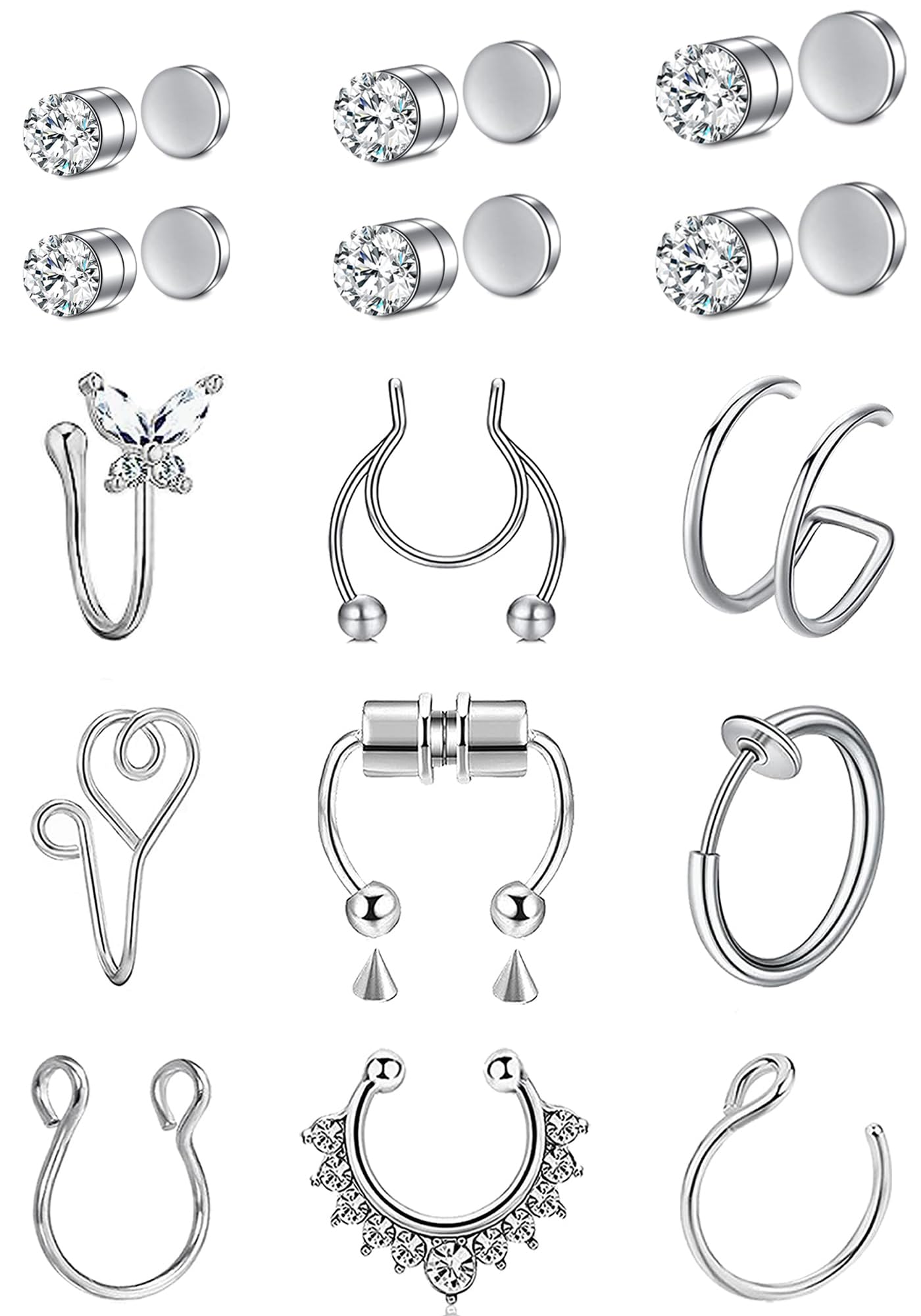 - 【Pack includes】3 sizes (3mm+4mm+5mm) magnetic nose ear studs each pair, 1 magnetic septum nose ring, 8 different styles of fake nose rings fake ear cuffs. Meet your daily wear, so you always dazzle.
