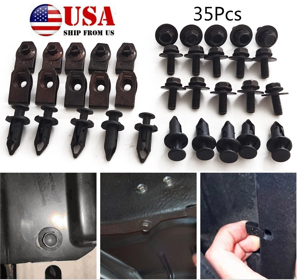 10pcs Extruded U-nuts 15pcs Body Bolts with Built-in Fender Washer 10pcs Nylon Push Clips