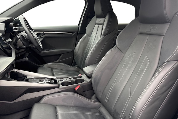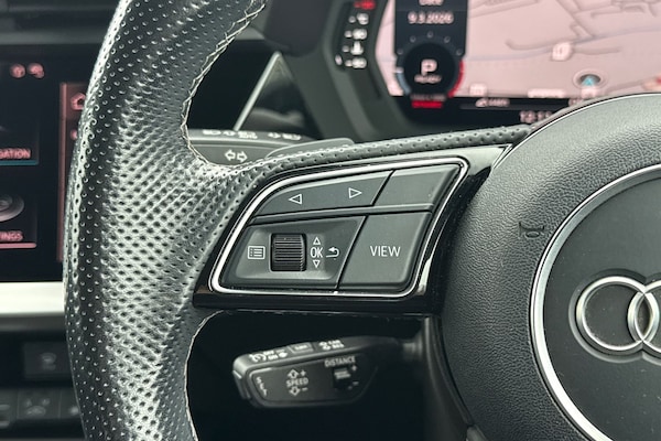 This Approved Used Audi A3 Saloon Black Edition combines sleek executive styling with a sporty edge. Finished in the sophisticated Daytona Grey Pearl Effect paint, this car catches the light beautifully and looks incredibly sharp on the road. As a Black Edition model, it features darkened exterior accents that perfectly complement the impressive 19-inch 5-arm trapezoid design alloy wheels. Under the bonnet is the punchy 35 TFSI engine producing 150 PS, paired with the smooth and responsive S tronic automatic gearbox for a refined driving experience. The interior is a high-tech space designed for maximum comfort and convenience. It features the premium Bang & Olufsen sound system, delivering crystal-clear audio for all your favourite music. On those cold British mornings, the heated front seats provide a welcome touch of luxury. Parking this saloon is a breeze thanks to the rear-view camera and the front and rear parking sensors, giving you total confidence in tight spots. For longer motorway journeys, the cruise control system helps you maintain a steady pace with ease. You can also stay fully connected while on the move with the Audi smartphone interface, which allows you to use Apple CarPlay or Android Auto for navigation and hands-free calls. This A3 Saloon offers a fantastic blend of premium quality, great technology, and eye-catching looks.