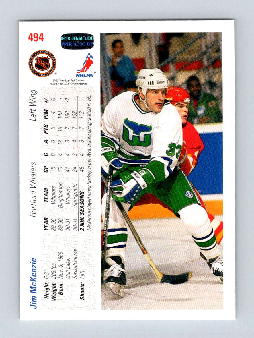 | 1991-92 Upper Deck Jim McKenzie Rookie Hartford Whalers #494 |
