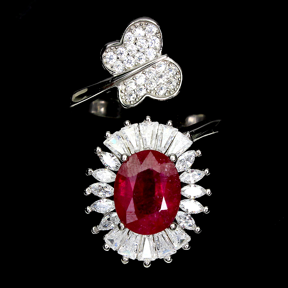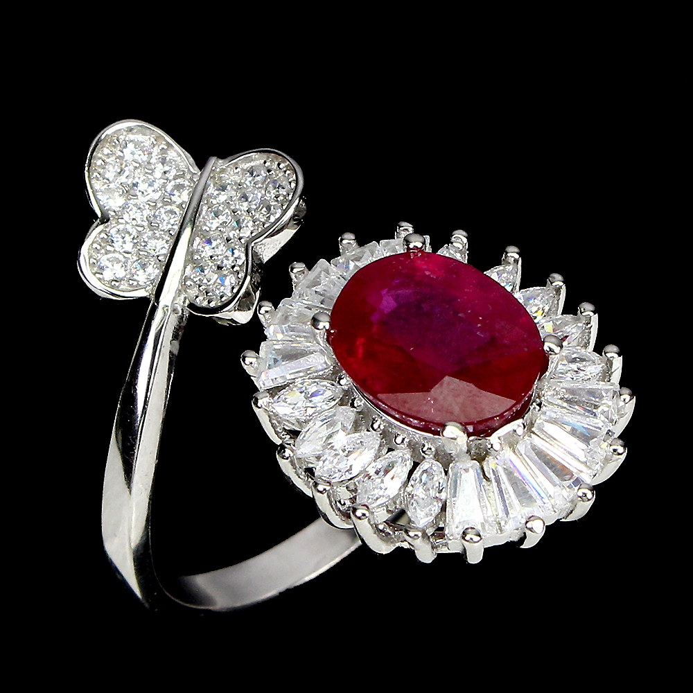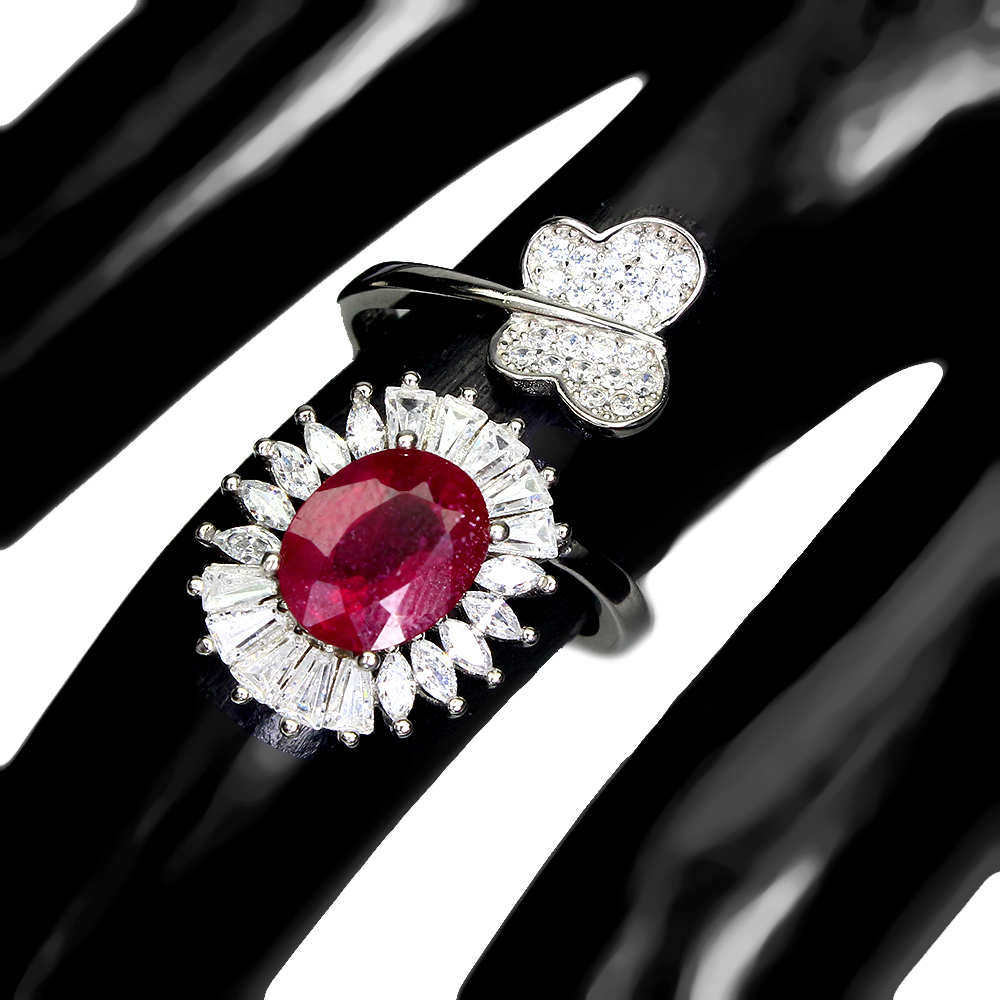 Anello a farfalla in argento sterling 925 con rubino ovale da 9x7 mm con cz 14K placcato in oro bianco