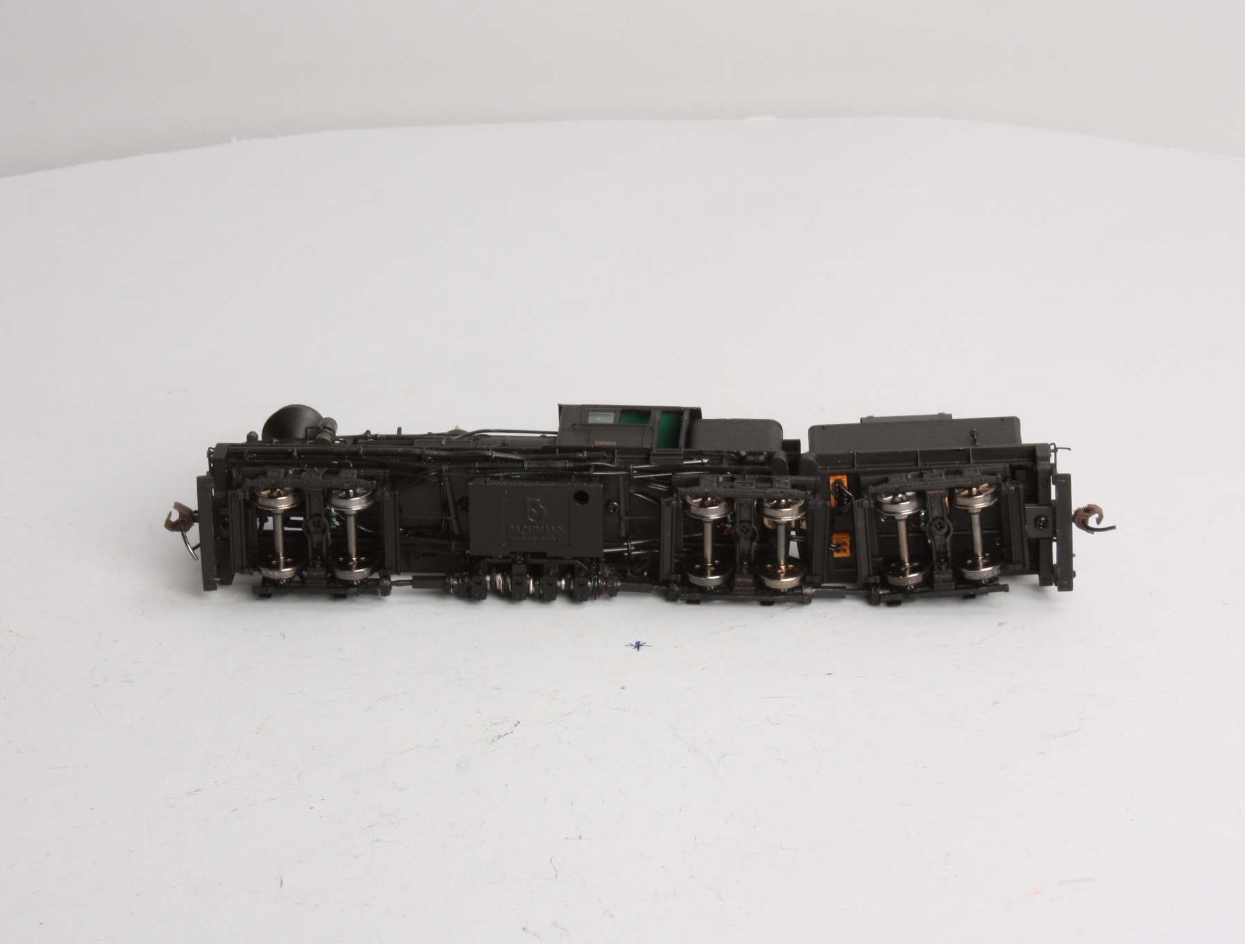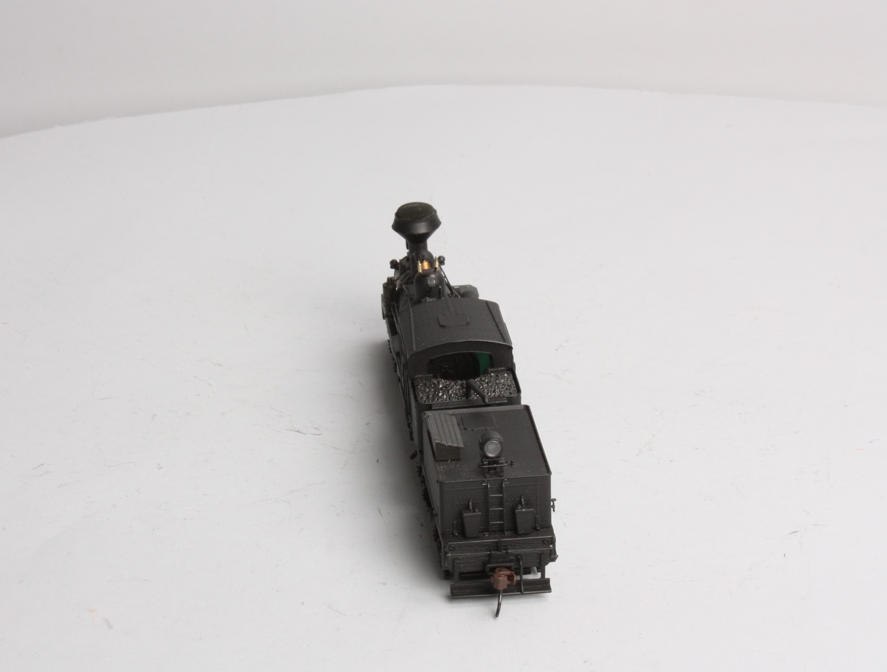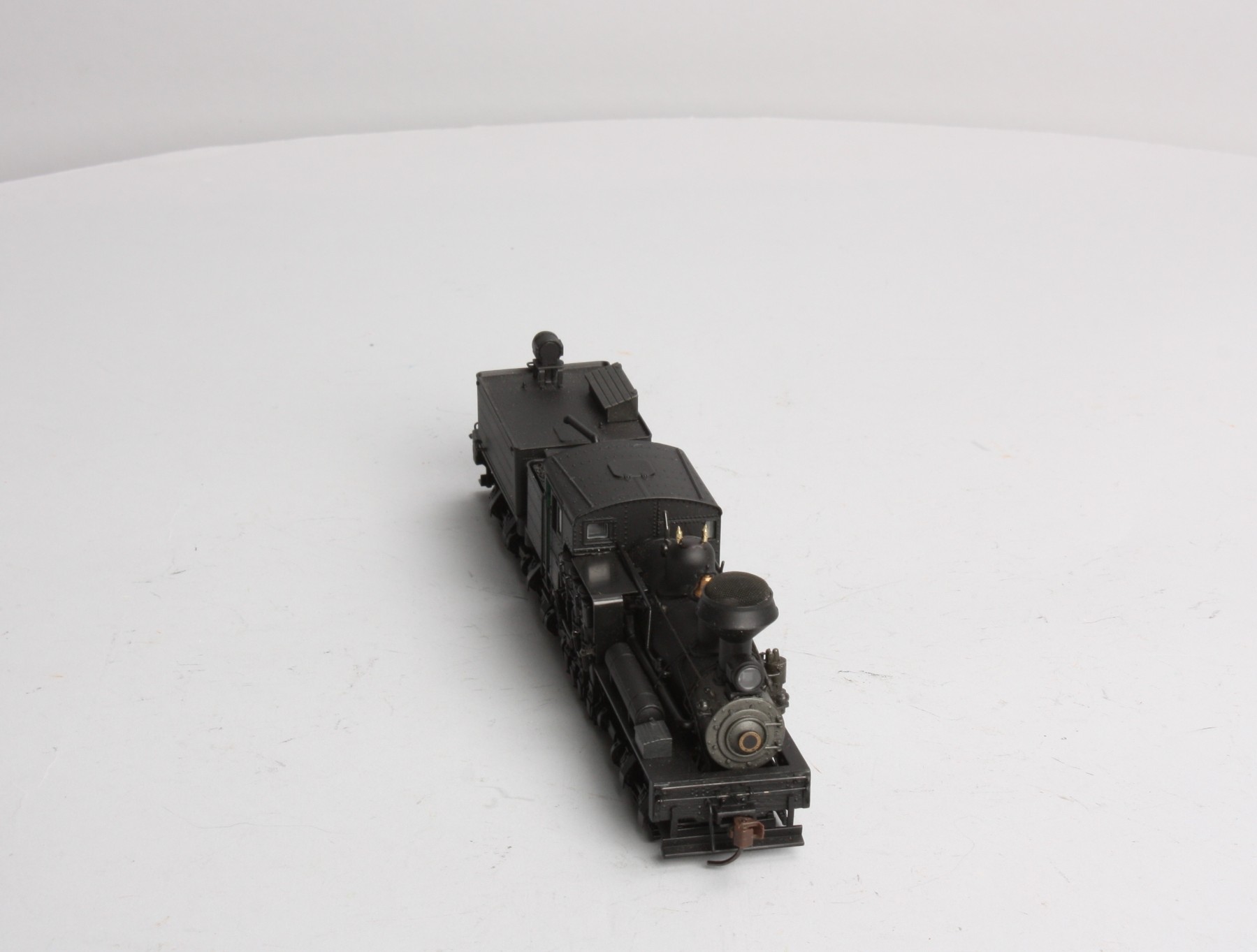 Here is a Bachman 81902 HO Scale Unlettered 80-Ton Three Truck Shay with a Steel Cab. Features include DCC ready, operating headlight and directional lighting, complete prototype drive train, scale metal driveline, precision sealed can motor with metal motor bearings, separately applied stack, domes and cab, separate detail parts, including bell, whistle, pop valves, cut levers and handrails, separate sanding lines, detailed cab interior, lighted firebox, finescale deadwoods (pilot beams), operating piston rods and valve gears, finescale brake rigging and double truss rods, RP25 wheels with tapered spokes on locomotive and tender, and E-Z Mate® Mark II couplers