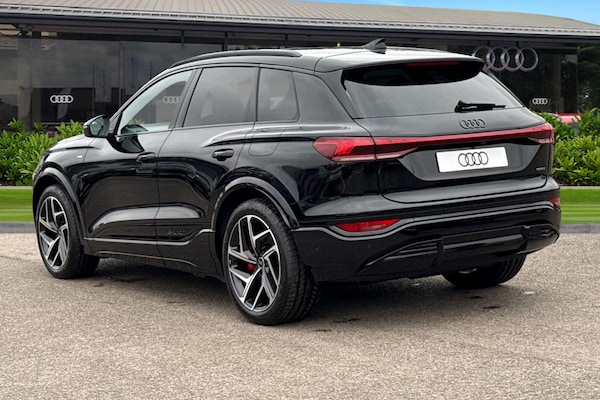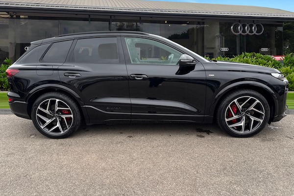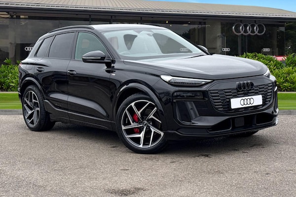 Vehicle price shown includes a deposit contribution of £5000 when purchased on finance by 31/03/2026. Solutions Personal Contract Plan. 5.9% APR Representative. Audi Financial Services. Terms and Conditions apply. Check out this Brand-New Audi Q6 SUV Edition 1 e-tron Quattro in Mythos Black, with its 21"" 5-Y-spoke dynamic style Audi sport alloy wheels which look superb out on the roads. The Matrix LED headlights with LED rear lights pro, create that strong visibility in all weather conditions. This Q6 has some fantastic optional extras, such as the Sound and Vision pack which does include the Bang and Olufsen premium sound system with 3D sound and integrated headrest speakers, for that excellent sound experience. It also includes the augmented reality head-up display which further enhances safety and convenience by allowing the driver to keep their eyes on the roads. The Ambient lighting package plus with dynamic interaction light, enhances the cabins ambience and improves visibility of controls at night. Some other great features include the Top-view camera which creates that additional vision and assists greatly in all maneuvering situations. The heated front and outer rear seats are perfect for those cooler mornings. Fully charging or just topping up your phones battery on any journey, is a breeze thanks to the phone compartment with wireless charging. Apple Carplay and Android Auto can be accessed via the multimedia interface, giving you access to apps like Spot...