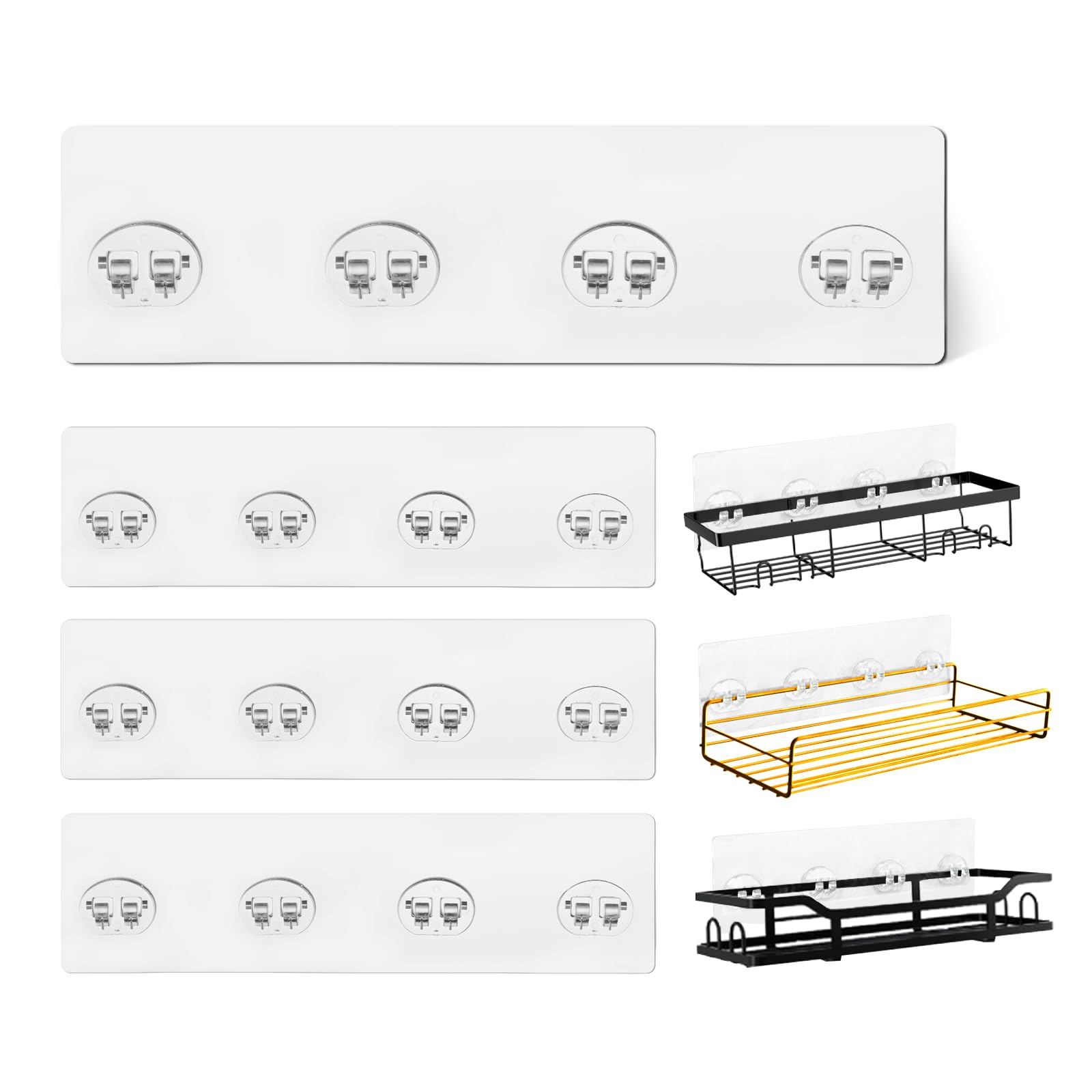 Upgraded Structure for Enhanced Stability: Our Shower Caddy Adhesive for Replacement features an upgraded structure with superior stability and weight capacity. It can securely hold up to 55 pounds, making it ideal for Shower Caddy, corner shelf baskets, bathroom racks, kitchen racks, and soap holders.