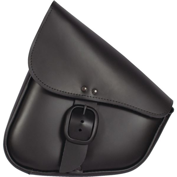 - Genuine leather bag fits bikes with a triangulated swingarm when mounted on the left hand side of bike