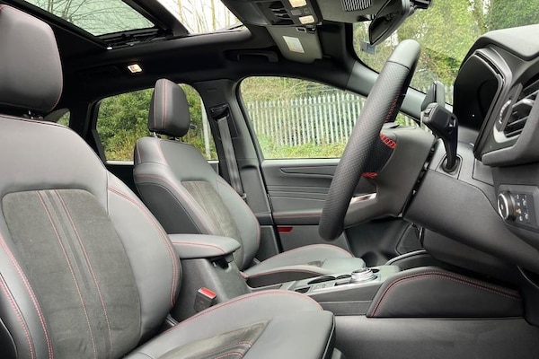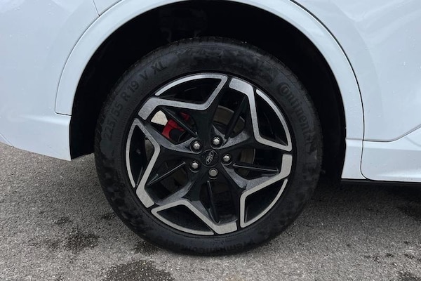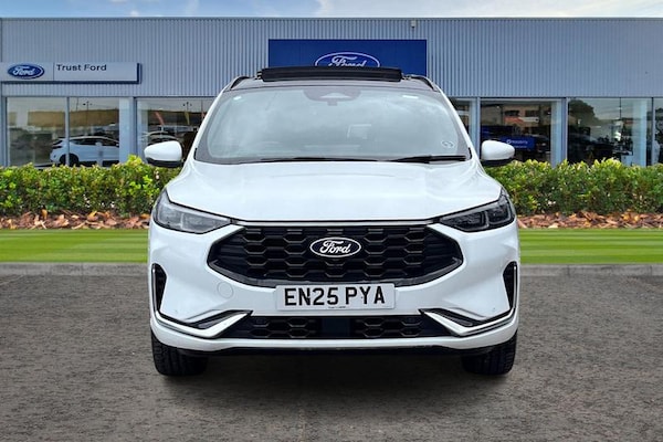 12.3 digital colour instrument cluster, 360 degree view camera, Clear exit assist, Cross traffic alert with active braking, e-Call (emergency call), Ford easy fuel, Ford SYNC 4 Navigation with 13 touchscreen, DAB radio, emergency assistance, Andriod Auto/Apple CarPlay, 5G modem & Ford Pass connect, Front and rear parking sensors, Hands free power tailgate, Lane centering assist, Lane keeping aid with lane departure warning, Power assist steering, Selectable drive modes, Service interval indicator, Auto headlamps with high and low beam, Black roof rails, Body colour bumpers, Front LED fog lamps, Large rear spoiler, LED daytime running lights, LED rear lights, LED third brake light, Pop out door edge protectors, Power front/rear windows with global close, Power heated folding door mirrors with puddle lights, memory function and camera, Power opening panoramic roof, Quickclear heated windscreen, Rain sensing wipers, Rear privacy glass, Rear side wing doors, Rear wiper, ST-Line body styling kit, 2nd row sliding seats, Electronic automatic temperature control (EATC), Front and rear head restraints, Partial premium touch sensico upholstery, Rear centre head restraint, Single front passenger seat, Sports seats, 3x3 point rear seatbelts, Airbags - front driver/passenger, front and rear curtain, Drivers knee airbag, Dynamic brake support, Electronic stability control (ESC) and ABS, Evasive steering assist, Ford MyKey Gen 2 safety system, Manual child proof rear door locks, Pre