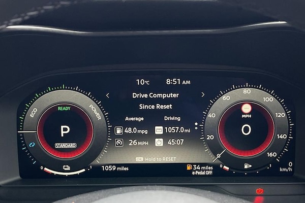 12.3 full colour TFT screen combimeter, Drive modes select (Eco, normal and sport), e-Pedal step, Emergency and breakdown call, EV mode switch, Front parking sensor, Intelligent driver alert system, Intelligent lane intervention, Lane departure warning system, Nissan connect 12.3 touch screen entertainment system, Nissan connect nav with TomTom traffic, Nissan connect services, Outside temperature sensor, Power Steering, Rear parking sensor, Stop/start button, Traffic sign recognition, Trip computer, Voice recognition, WiFi connectivity, Wireless Apple CarPlay and Google Android auto, Wireless Smartphone charger, Automatic hazard signal with emergency stop signal, Body colour door handles, Electrically adjustable door mirrors with integrated indicators, Follow me home headlights, Front and rear electric window with one touch driver window, Heated and auto folding door mirrors, High beam assist, LED 3rd brake light, LED daytime running lights, LED headlamps, LED rear fog lamp, LED rear lamps, Manual dimming framed interior rear view mirror, One touch passenger window, Rain sensor windscreen wipers, Rear privacy glass, Rear side wing doors, Rear wiper, Roof spoiler, Shark fin roof antenna in solid Black, Solid black door mirrors, Three blink turn signal, 3 height adjustable rear headrests, 3 seat bench in 2nd row, 60/40 split folding rear seat, Automatic climate control, Card holder on driver sunvisor, Cloth/Synthetic leather with melange fabric inserts, Driver side rear coat