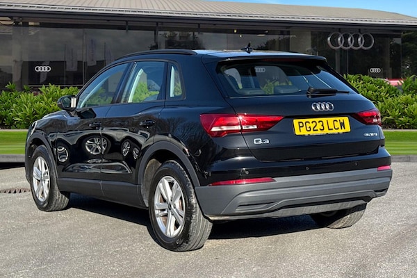 This 2023 Audi Q3 TFSI Technik boasts exceptionally low mileage for its age, having covered just 9740 miles, and has had only one owner since new. This Euro 6 compliant model is powered by a 1.5 litre petrol engine and comes with Audi manufacturer approval, offering peace of mind. Inside, youll find a comfortable cabin equipped with Dual Zone Electronic Climate Control for personalised comfort, a Bluetooth Interface for seamless connectivity, and Rear Parking Sensors to assist with manoeuvring. The Audi Q3 TFSI Technik offers a compelling blend of performance and efficiency. Its acceleration from 0 to 62mph in 9.5 seconds demonstrates its responsiveness, while its low CO2 emissions highlight its environmental consideration compared to similar vehicles. Furthermore, the generous boot space provides ample practicality for everyday needs and longer journeys, making this Q3 a well rounded choice.