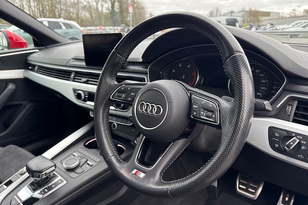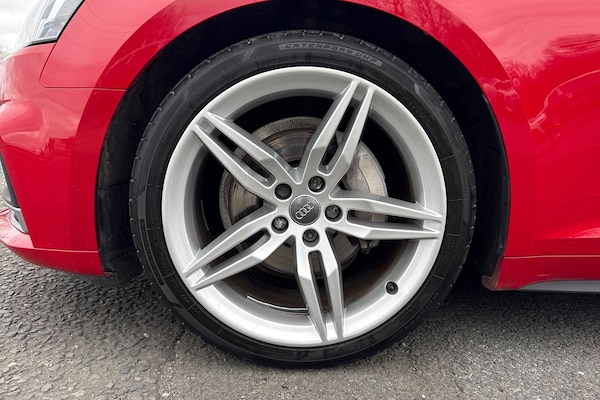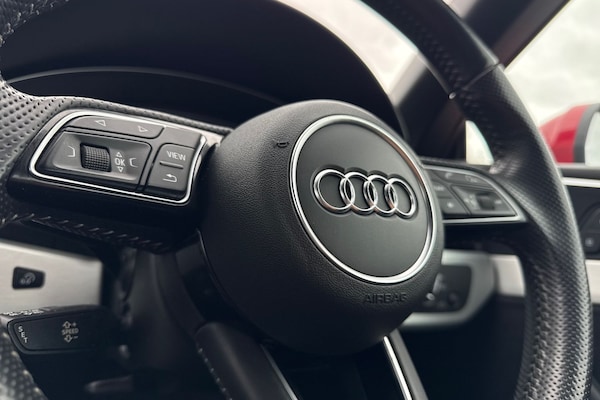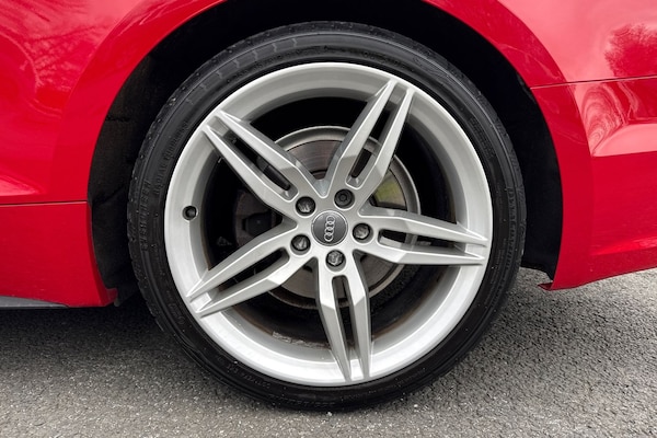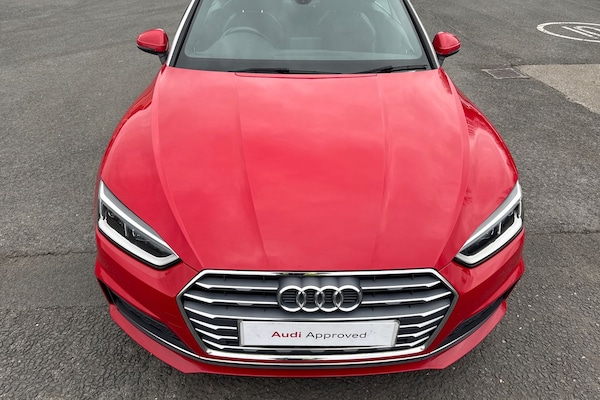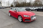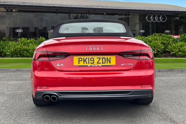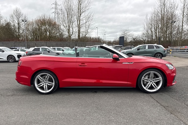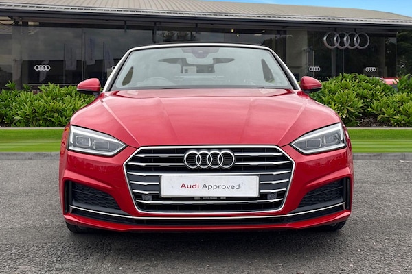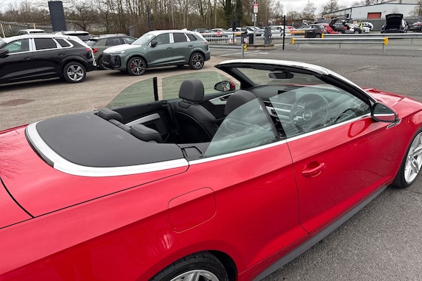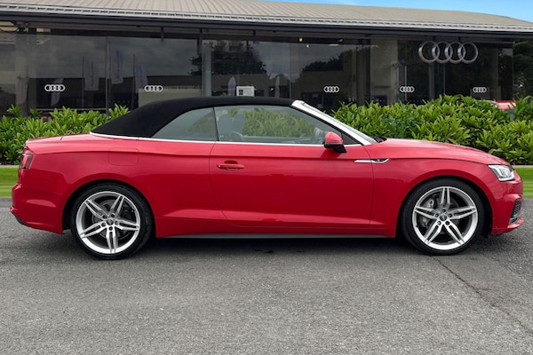 Demand attention on the road with this Approved Used Audi A5 Cabriolet S line 40 TDI S tronic. Finished in the vibrant Tango Red paintwork, this vehicle combines elegant open-top motoring with refined performance and premium comfort. With its sleek lines, athletic S line styling and beautifully integrated soft-top roof, this A5 Cabriolet delivers a striking presence whether the roof is up or down. Powered by a responsive 2.0-litre TDI diesel engine producing 190 PS, paired with a smooth S tronic automatic transmission, this model offers strong performance alongside excellent efficiency. It provides effortless cruising and refined power delivery, making it equally suited to long-distance journeys and relaxed top-down driving. The exterior is enhanced by striking LED headlights, delivering excellent visibility while complementing the Cabriolets clean and sophisticated design. Large 19"" alloy wheels further emphasise its sporty stance, perfectly balancing elegance and performance. Inside, heated and electrically adjustable front seats ensure maximum comfort in all conditions, making open-top driving enjoyable even on cooler days. Deluxe 3-zone climate control maintains a comfortable environment for all occupants, regardless of the weather. Wireless Apple CarPlay and Android Auto provide seamless connectivity, allowing easy access to navigation, music and communication on the move. Front and rear parking sensors add extra confidence when manoeuvring, ensuring stress-free driv...
